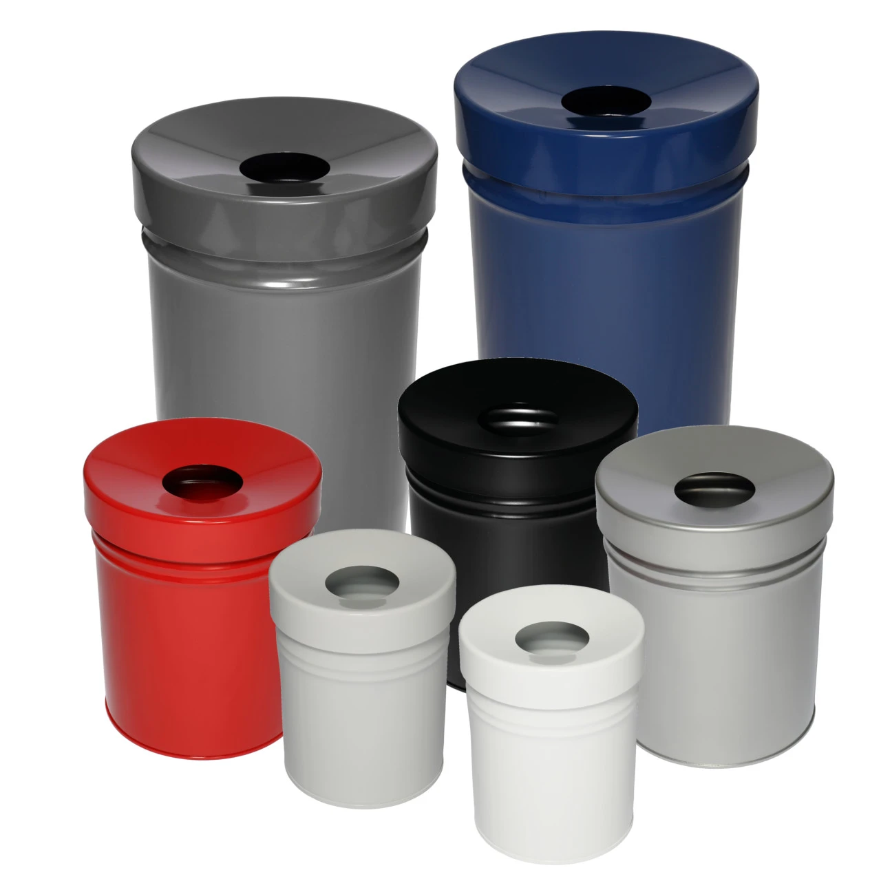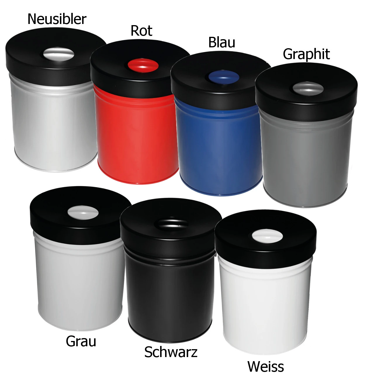 | Deckelfarben: | Stahlblech pulverbeschichtet in Rot, Weiß, Schwarz, Grau, Blau, Neusilber, Graphit | |||