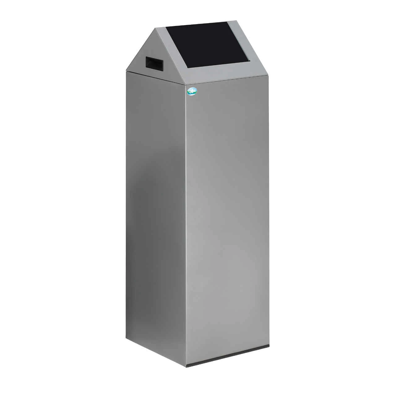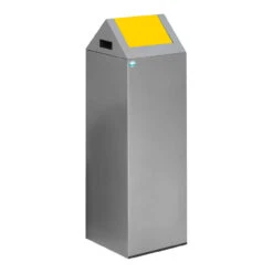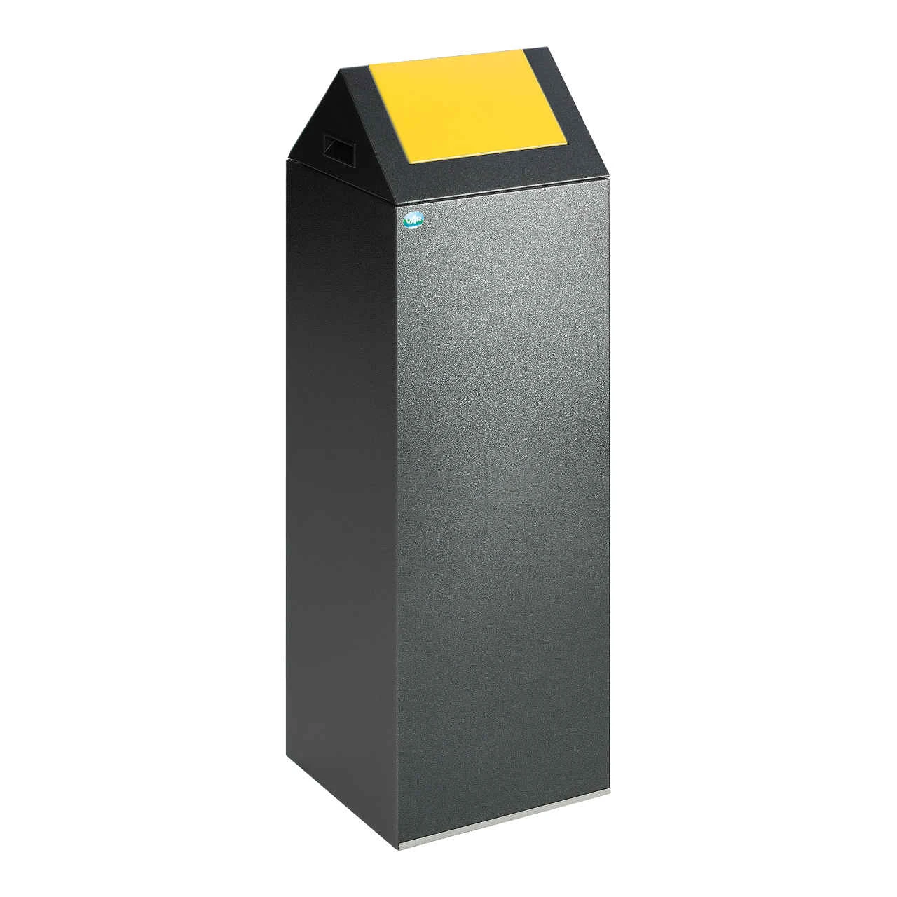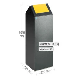 Das Kopfteil verfügt über eine selbstschließende Einwurfklappe und zwei praktischen Griffmulden zum Abnehmen. Für die sortenreine Abfalltrennung stehen verschiedenfarbige Einwurfklappen zur Auswahl, welche auf die Abfallart hinweisen: