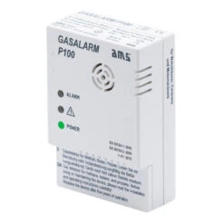 Der Gasmelder AMS GASALARM P100 mit Relaisausgang erkennt bereits geringe Konzentrationen von Stadtgas bzw. Erdgas (Methan) und Flüssiggas (Butan bzw. Propan) in der Raumluft und warnt sowohl akustisch mit einem 85 dB lauten Alarmton als auch optisch durch eine rote Alarmanzeige am Gerät.