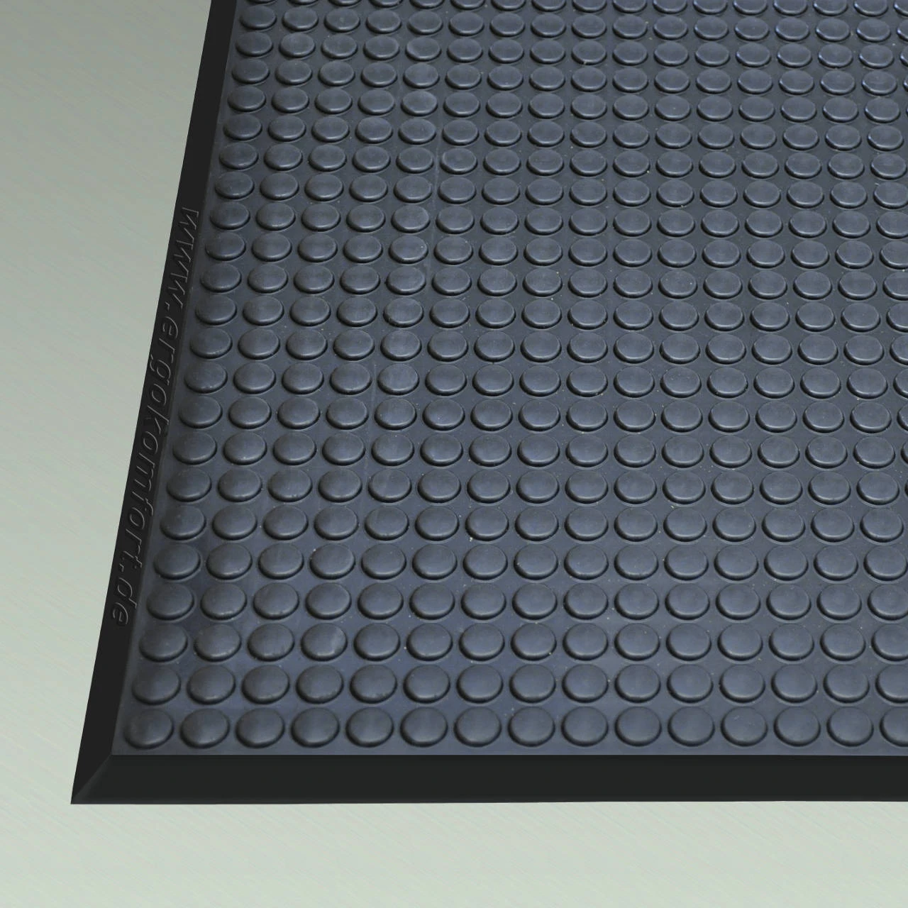 Im Gegensatz zu den Erstgenannten verfügt die NI-FN jedoch über abgeflachte Noppen auf der Oberseite, Diese verhindern eine Stoppwirkung bei Drehungen am Arbeitsplatz und bieten dennoch den gleichen ergonomischen Komfort wie klassische Rundnoppen. und unterstützt ergonomisch regelmäßige Drehbewegungen am Arbeitsplatz. Die NI-FN Arbeitsplatzmatte ist rutschhemmend und gewährleistet einen stabilen Stand an allen Arbeitsplätzen. Sie schützt vor Ermüdung und entlastet die Gelenke und Muskulatur nachweislich.