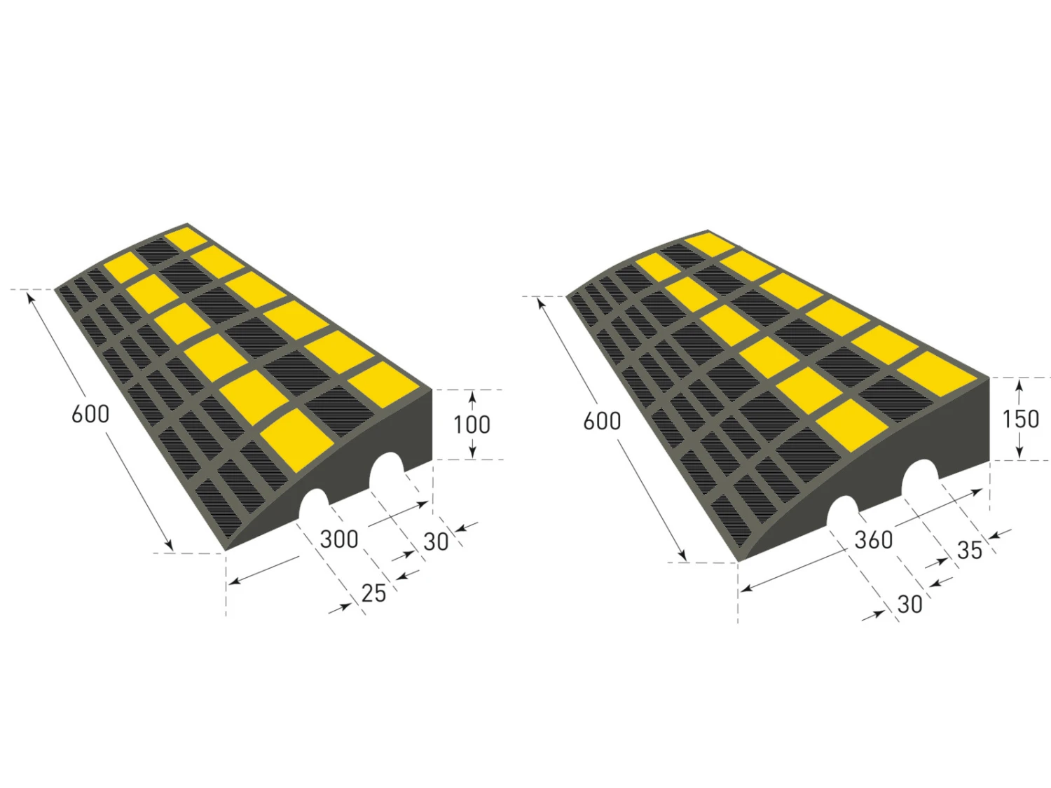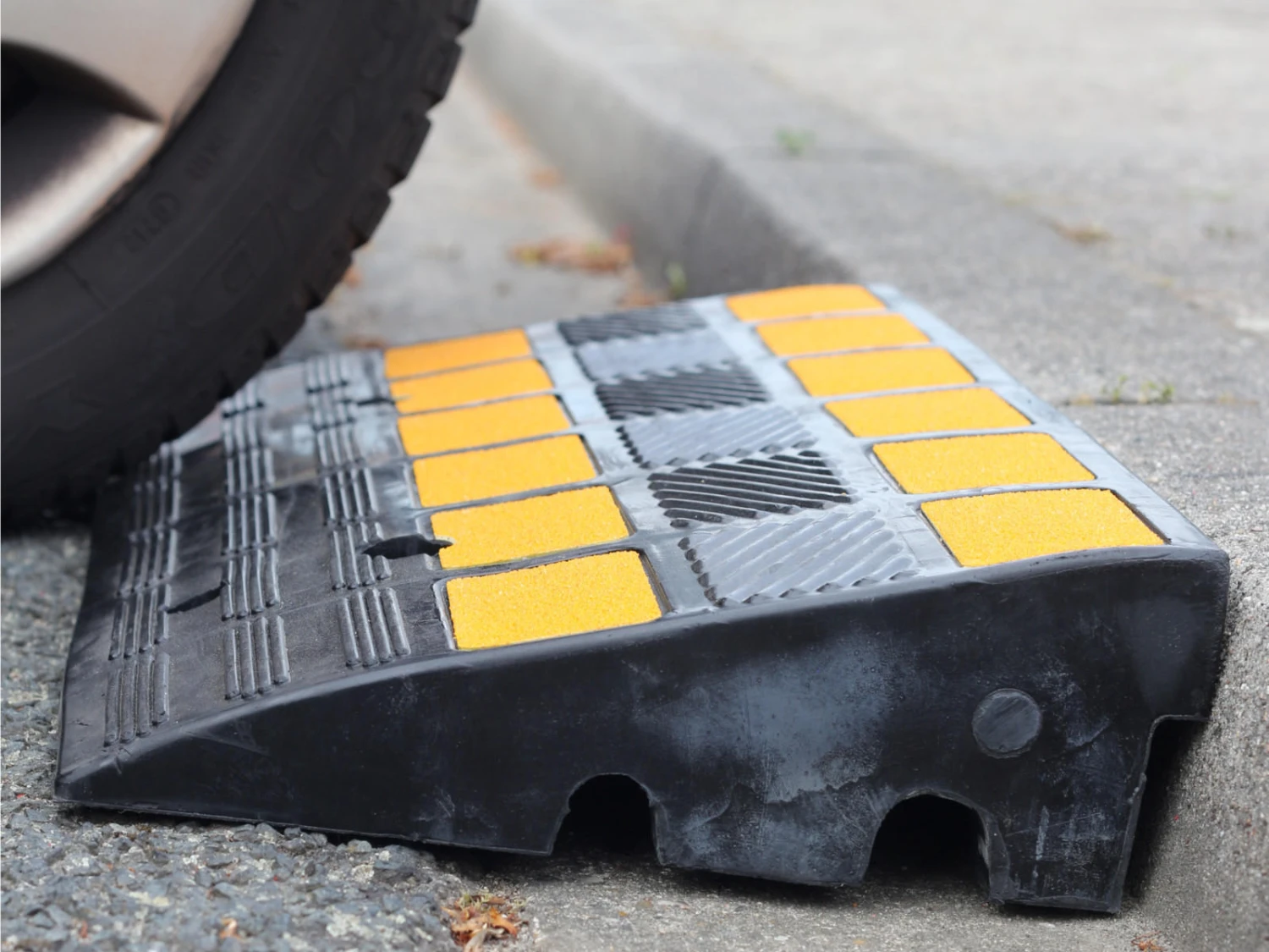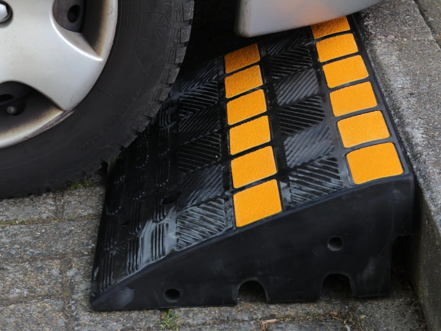 Die aus robustem Hartgummi gefertigten Bordsteinrampen sind vielseitig einsetzbar, wie zum Beispiel für die Verwendung vor Hauseinfahrten, Garageneinfahrten oder auch im gewerblichen Bereich. Die Rampen sind mit einer profilierten Anti-Rutschoberfläche versehen. Gelbe Reflexstreifen sorgen für zusätzliche Sicherheit und Erkennbarkeit auch bei Dunkelheit.