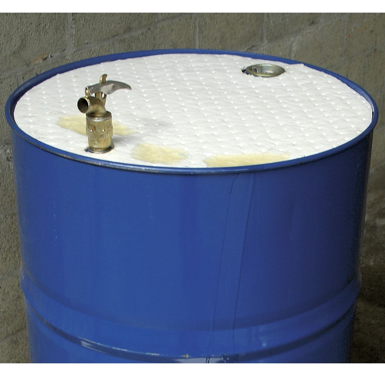 Brady ölbindende Fassabdeckung zum Absorbieren von Flüssigkeiten auf Öl- und Mineralölbasis. Verhindert zuverlässig das Überschwappen von Fässern und verhindert, dass Arbeitsbereiche verschmutzt werden. Die Abdeckung ist mit vorgestanzten Öffnungen zur Befestigung am Fass versehen.