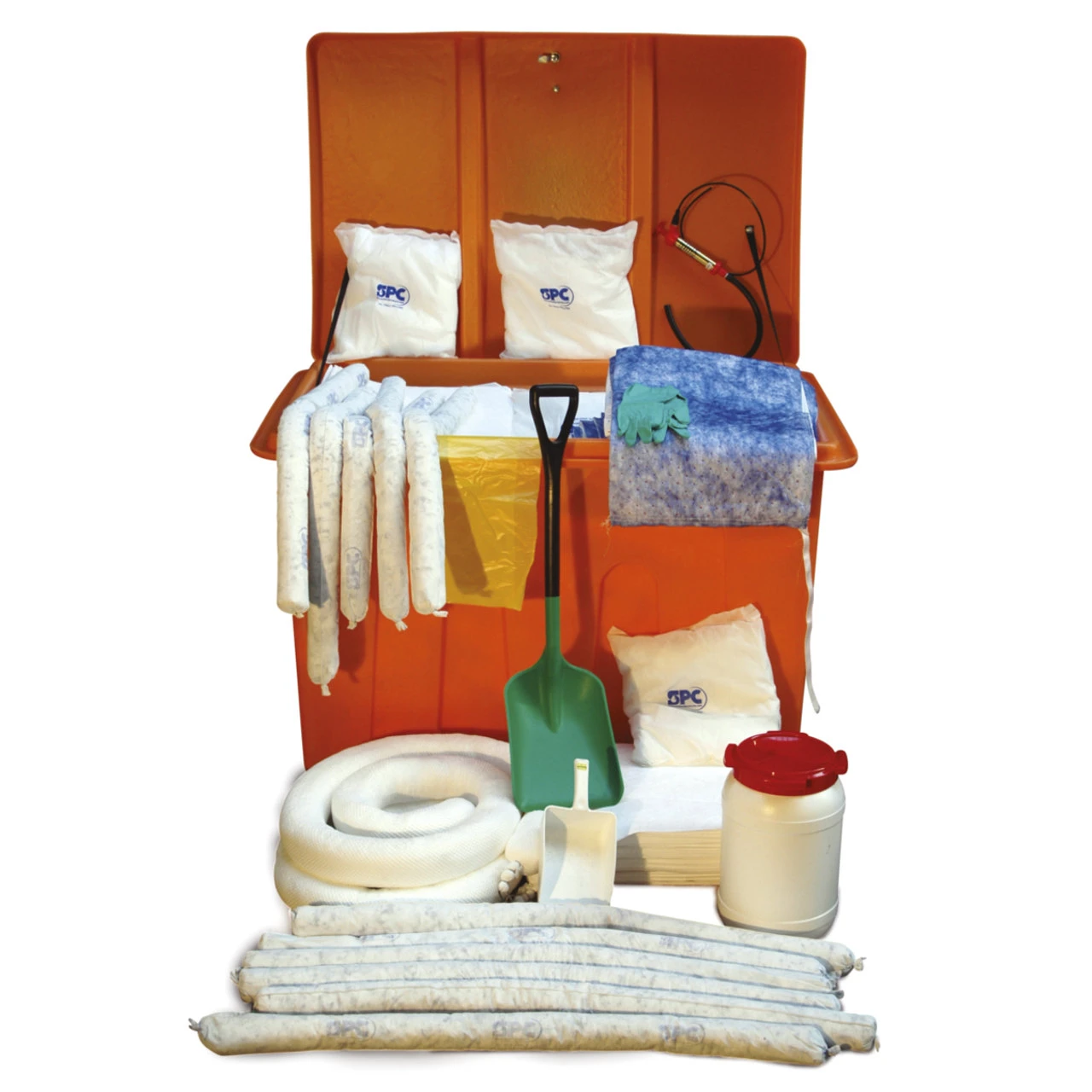 Diese speziellen Sets wurden für Firmen entwickelt um den Oil Pollution Act aus dem Jahr 1990 zu erfüllen und bieten für jeden Notfall die richtige Lösung. Die mitgelieferten, beständigen Aussencontainer können jederzeit wieder befüllt werden und eigenen sich auch für Unternehmen mit einem konstant hohen Bedarf an Ölbindemitteln oder als Vorratsanlage. Die passenden Inhalte können bei Verbraucht flexibel nachbestellt werden.