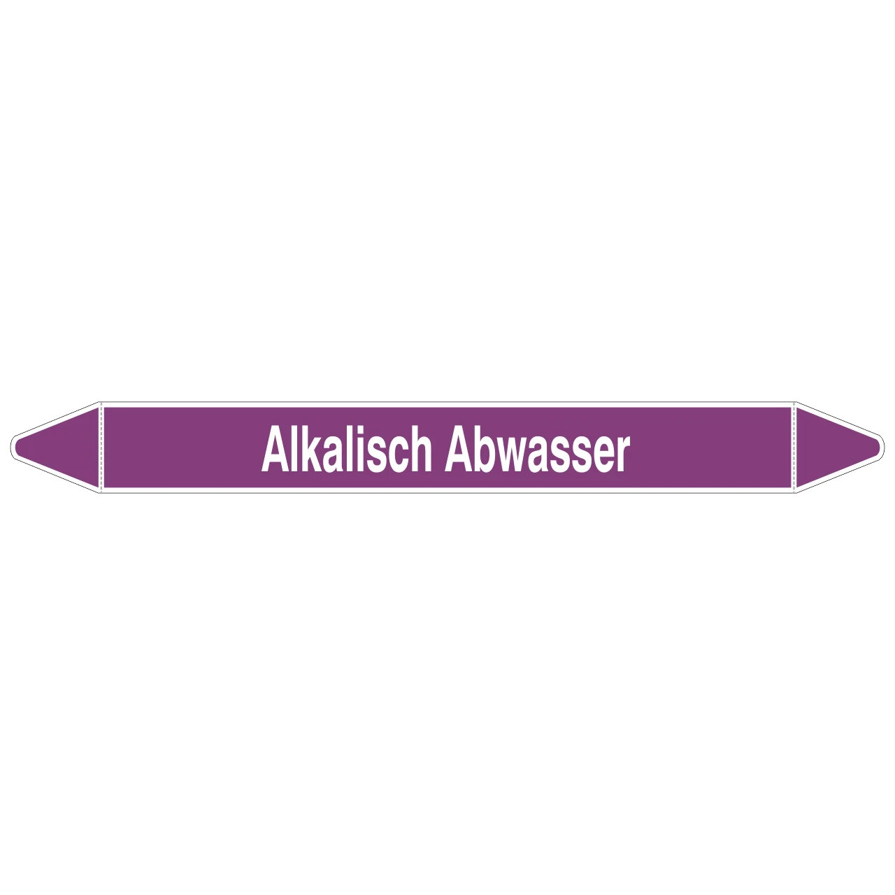 Der bereits vorgestanzte Rohrmarkierer mit dem Aufdruck Alkalisch Abwasser ist in verschiedenen Größen, je nach Rohrdurchmesser bzw. Erkennungsreichweite, erhältlich.