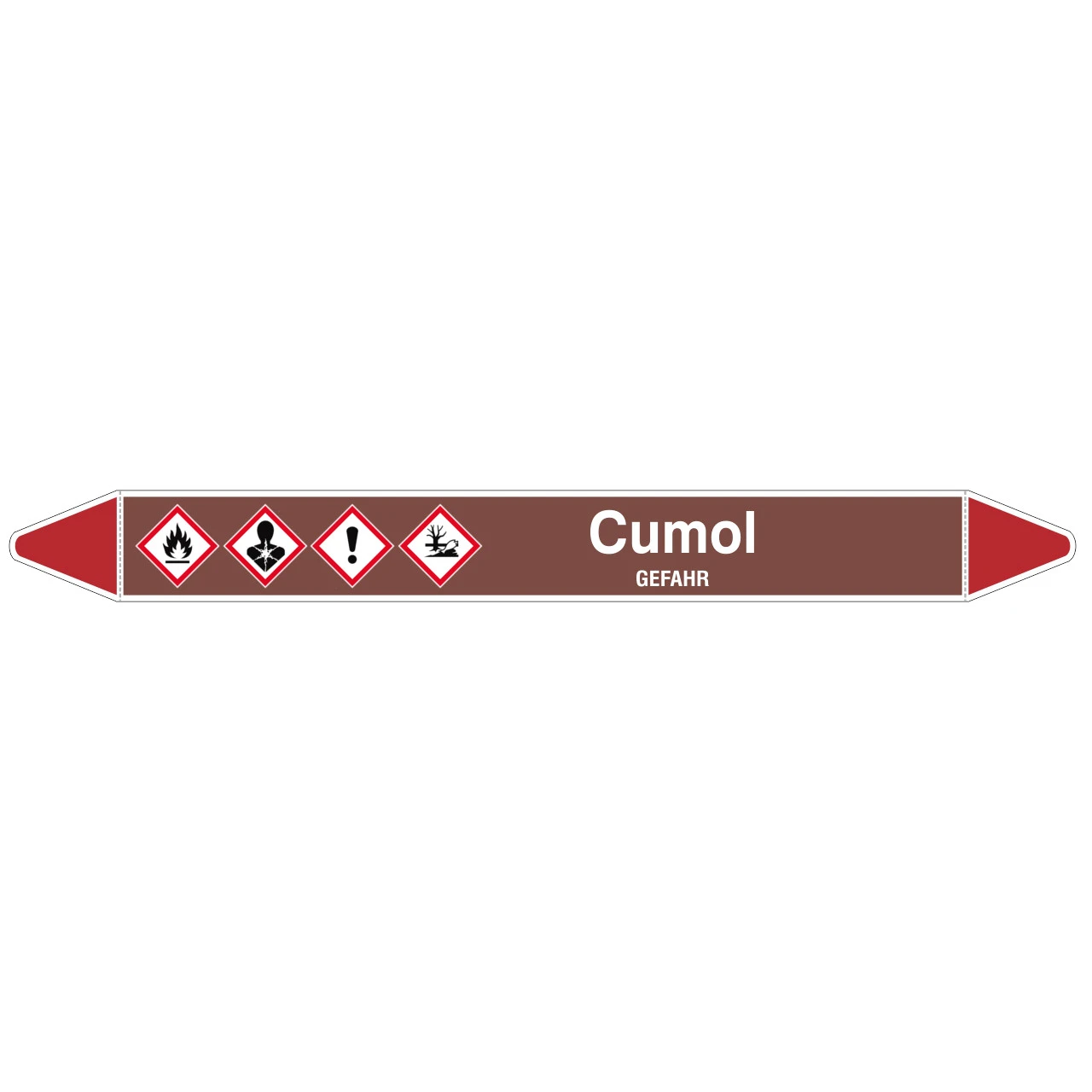 Brady Rohrmarkierer mit Text „Cumol – GEFAHR“ Rohrleitungsmarkierung Gruppe 8 – Laminierter Polyester B-7541