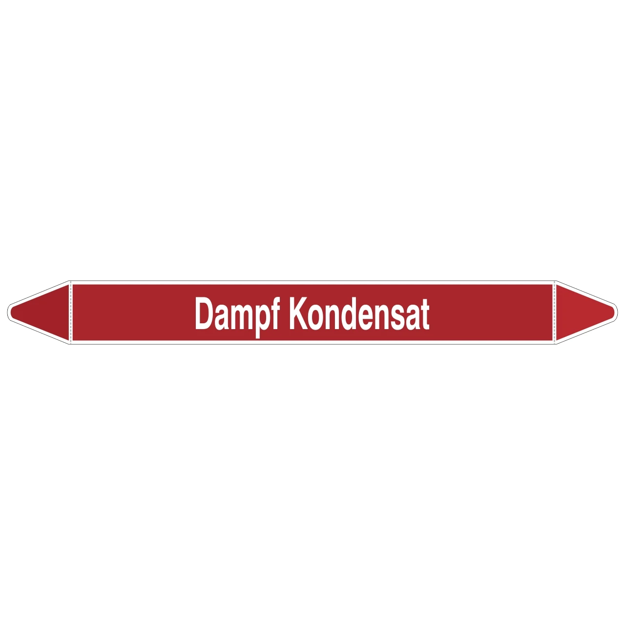 Der bereits vorgestanzte Rohrmarkierer mit dem Aufdruck Dampf Kondensat ist in verschiedenen Größen, je nach Rohrdurchmesser bzw. Erkennungsreichweite, erhältlich.