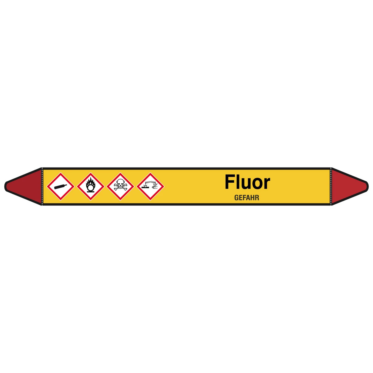 Brady Rohrmarkierer mit Text „Fluor – GEFAHR“ Rohrleitungsmarkierung Gruppe 4 – Laminierter Polyester B-7541