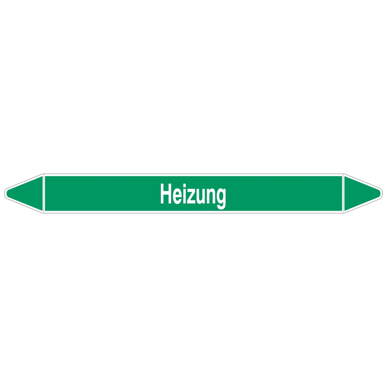 Der bereits vorgestanzte Rohrmarkierer mit dem Aufdruck Heizung ist in verschiedenen Größen, je nach Rohrdurchmesser bzw. Erkennungsreichweite, erhältlich.