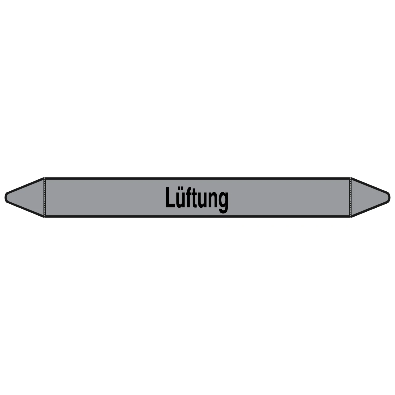 Der bereits vorgestanzte Rohrmarkierer mit dem Aufdruck Lüftung ist in verschiedenen Größen, je nach Rohrdurchmesser bzw. Erkennungsreichweite, erhältlich.