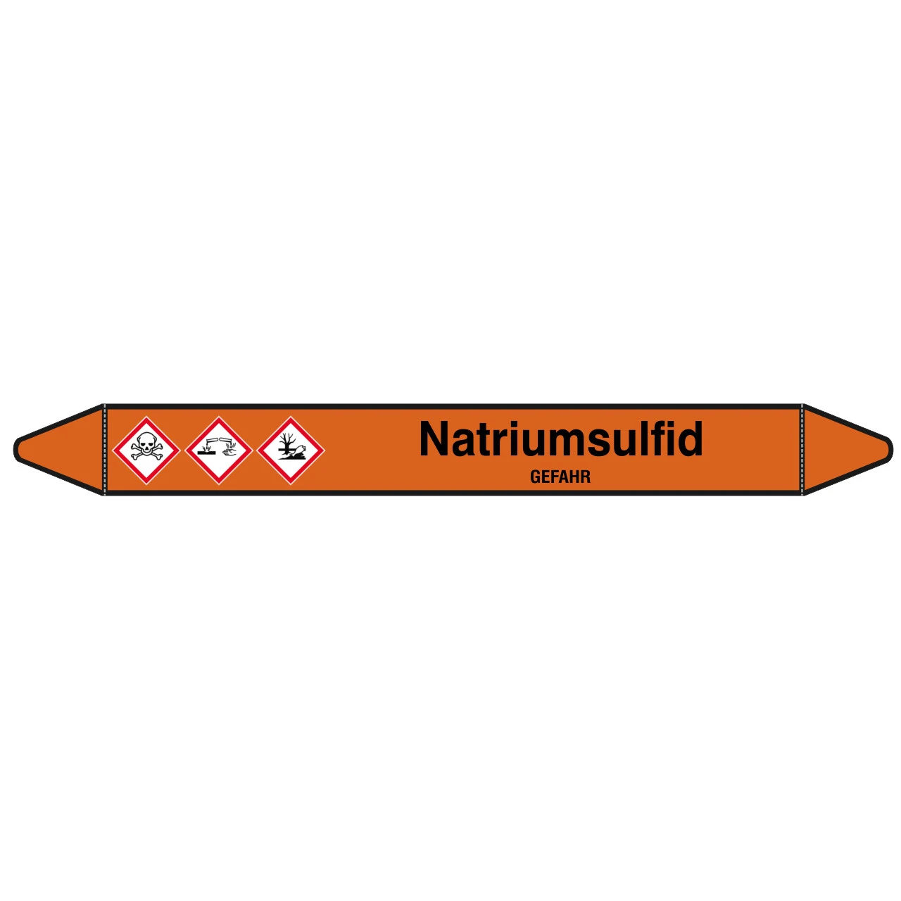 Der bereits vorgestanzte Rohrmarkierer mit dem Aufdruck Natriumsulfid – GEFAHR ist in verschiedenen Größen, je nach Rohrdurchmesser bzw. Erkennungsreichweite, erhältlich.