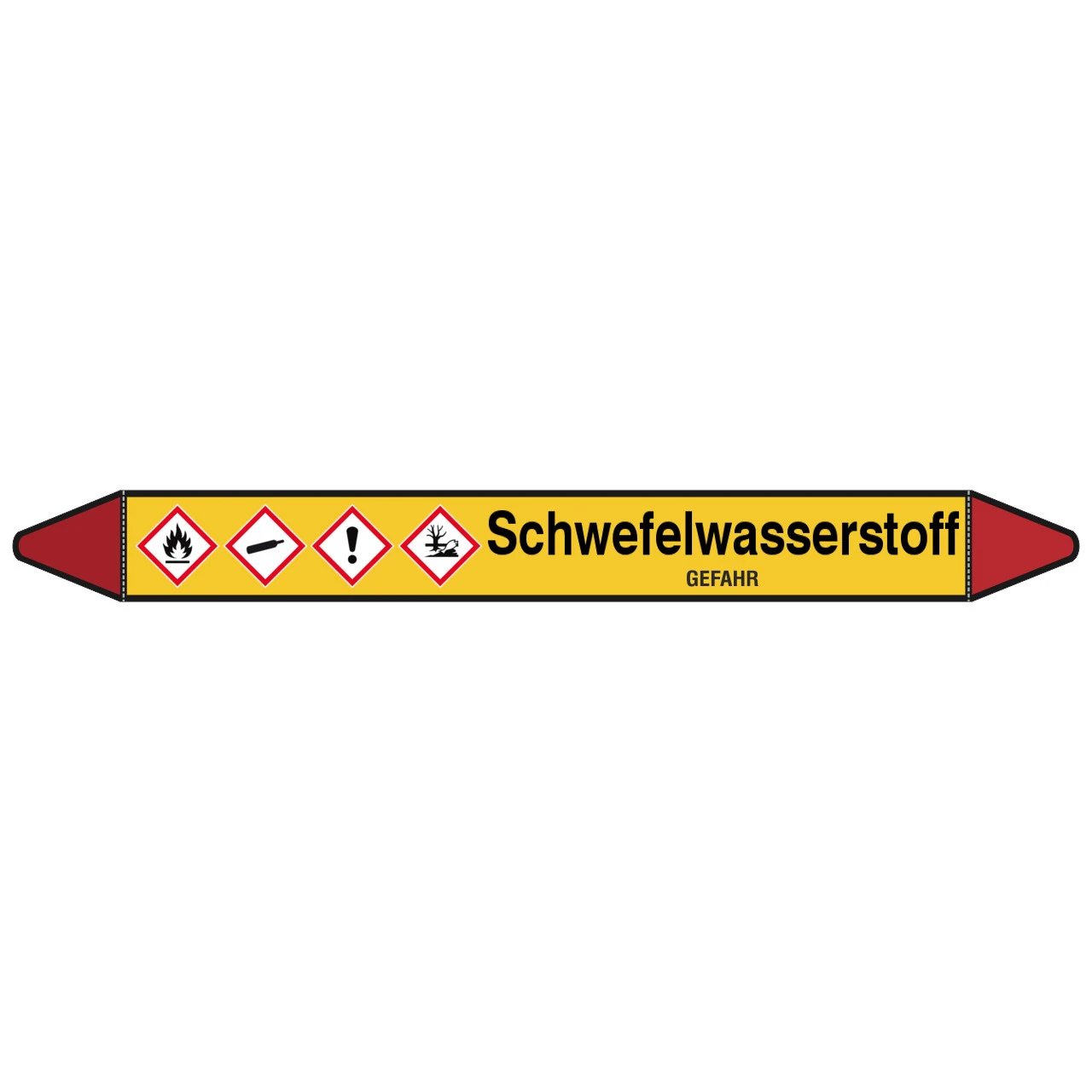 Brady Rohrmarkierer mit Text „Schwefelwasserstoff – GEFAHR“ Rohrleitungsmarkierung Gruppe 4 – Laminierter Polyester B-7541