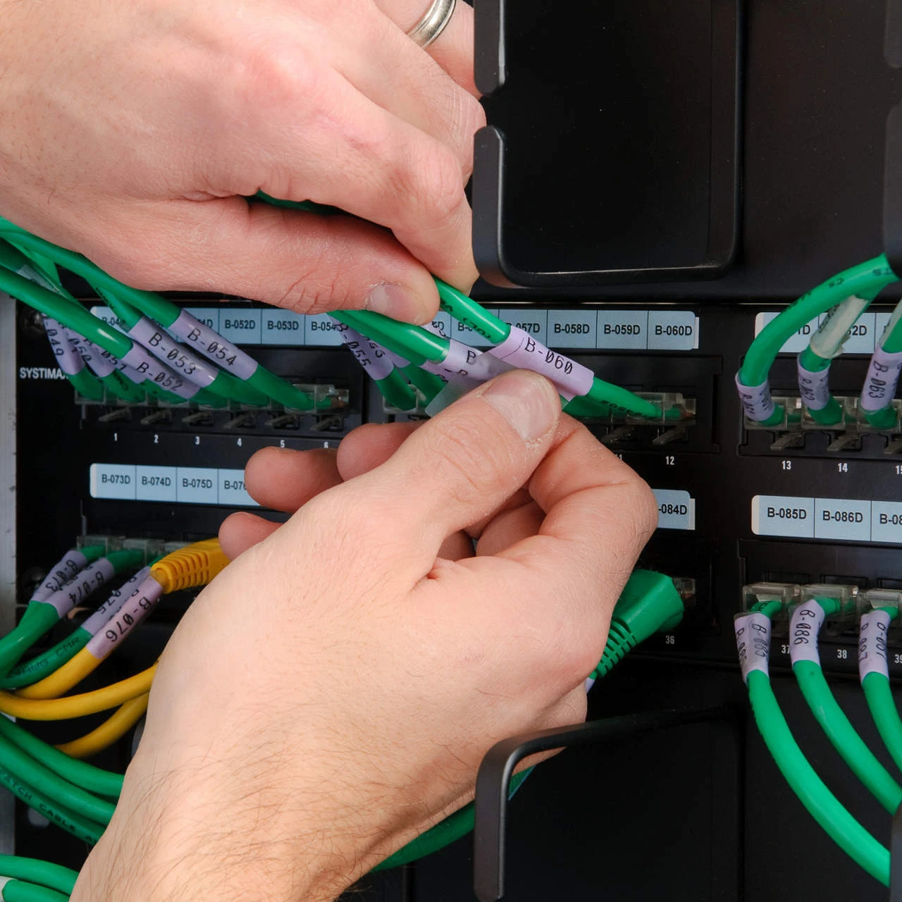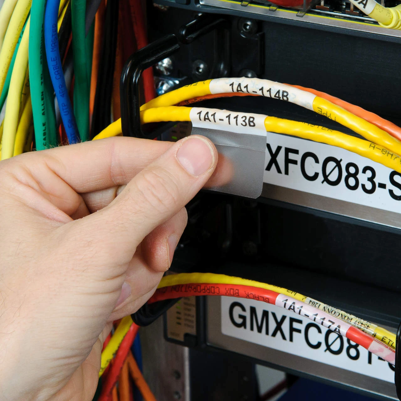 Etiketten zur schnellen und langlebigen Beschriftung von Leitungen, Kabeln oder kleinen Röhren. Die Etiketten werden nach dem Druck einfach um das Kabel gelegt und angepasst. Das umgebende Schutzlaminat hält den Druck auch Einfluss von Schmierstoffen, Öl oder Schmutz sauber und klar lesbar. Geeignet auch für den Aussenbereich mit bis zu 2 Jahren Haltbarkeit.