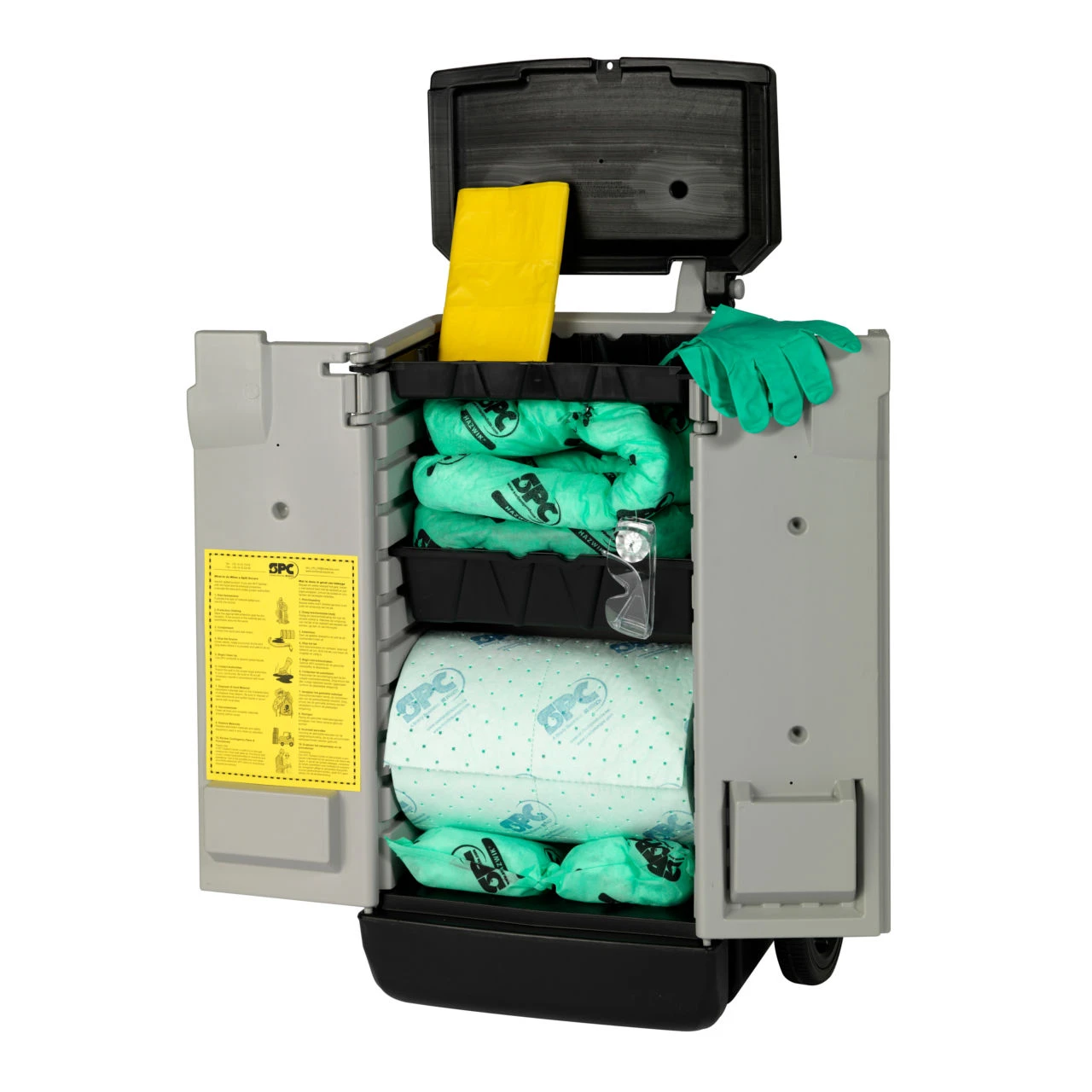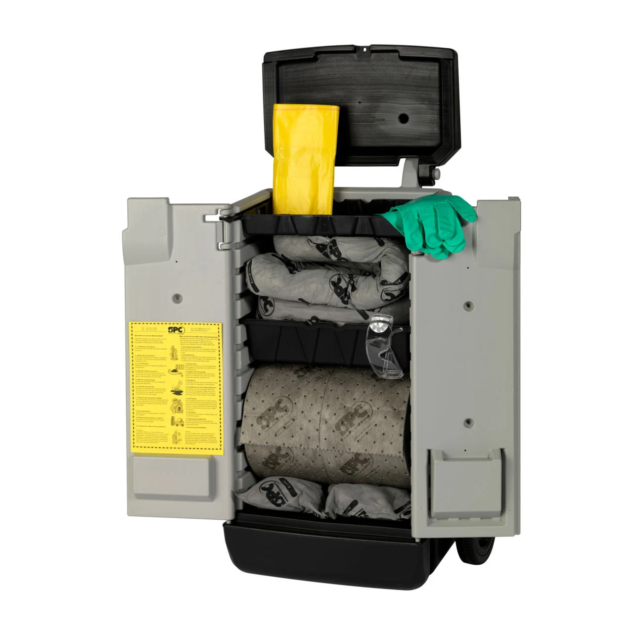 Kompakter Notfall- oder Wartungswagen mit Doppeltür zum schnellen Einsatz gegen Chemikalien, Öl oder andere Arten von Flüssigkeiten.