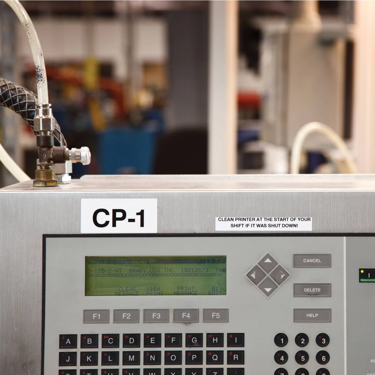 Extrem haftungsstarke Etiketten im Metallic-Look speziell für dauerhafte Typenschilder oder Maschinenbeschriftungen. Ebenfalls gut geeignet für pulverbeschichtete Gehäuse und Oberflächen.