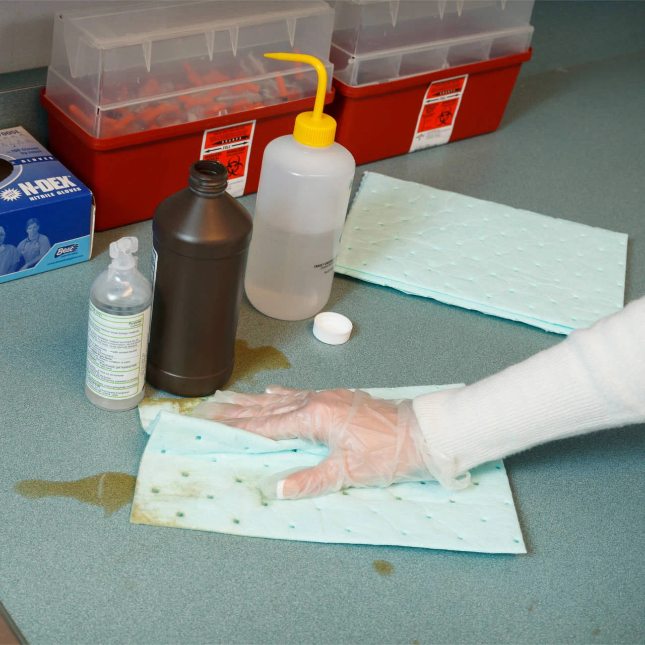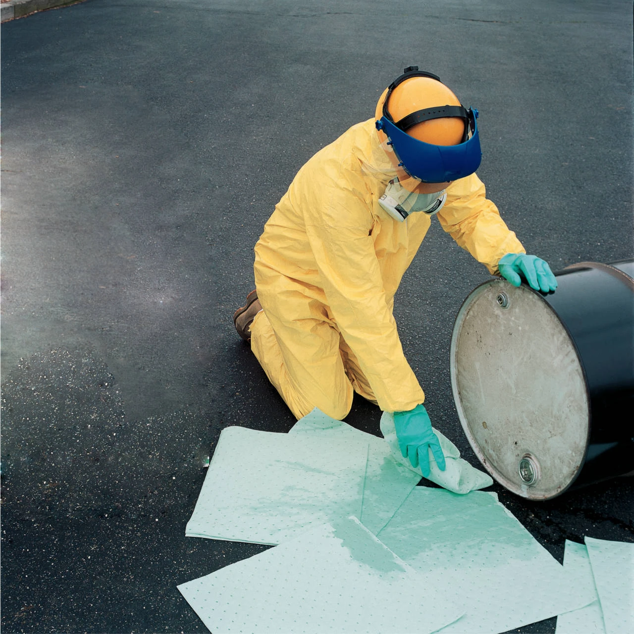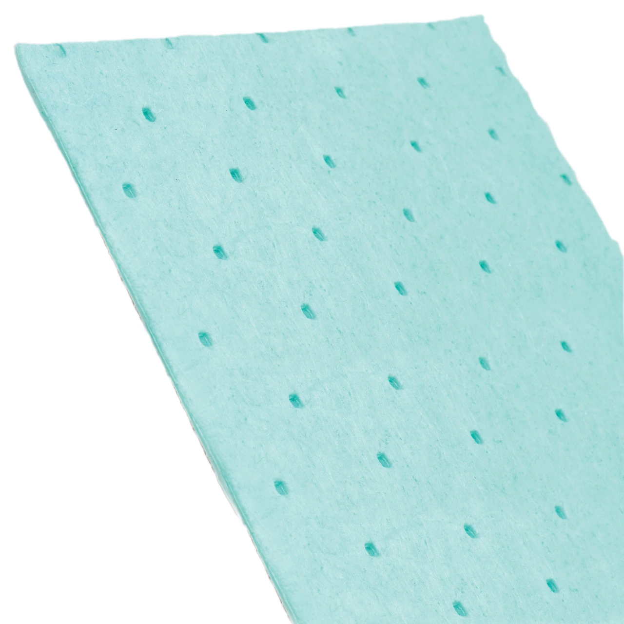 Chemikalienbindende Tücher zum Absorbieren von Flüssigkeiten einschließlich Säuren, ätzenden Stoffen und Basen. Die einseitige Decklage aus Spinnvlies sorgt für eine besondere Festigkeit und ist sehr fusselarm. Alle Produkte der UN Serie reagieren nicht bei Kontakt mit chemischen Flüssigkeiten. Die grüne Farbe weist zudem Mitarbeiter darauf hin, dass es sich um Gefahrenstoffe handeln könnte. Durch die integrierte Perforation lässt sich der Verbrauch der Tücher gut steuern. Ebenfalls wird Eine Trennung als Sondermüll erleichtert. Die Tücher eignen sich daher ideal in Laboren oder bei chemischen Leckagen.
