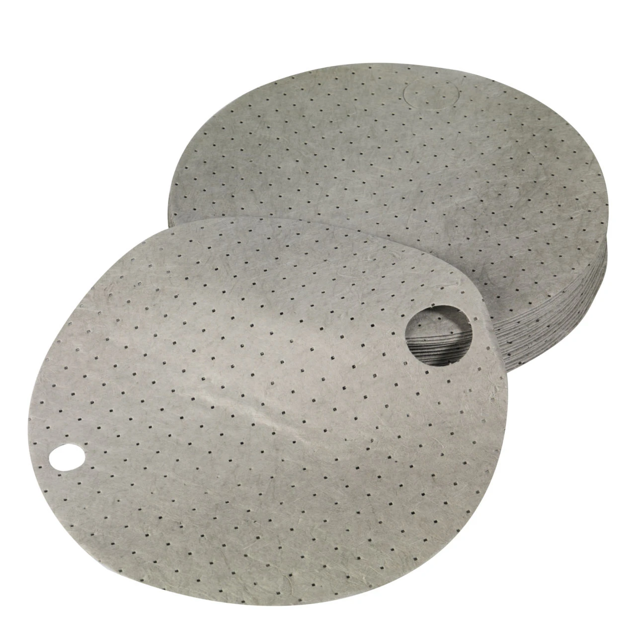 Allwick Universal- Abdeckung für nahezu alle Arten von Fässern. Absorbiert bis zu 26 Liter aller Arten an Flüssigkeiten wie Wasser, Öl, Kühlmittel, Lösungen und ähnliches. Das abgedeckte Fass wird sauber gehalten und ein Abtropfen des Inhalts wird zuverlässig verhindert. Die Allwick Fassabdeckung ist vorgestanzt angepasst auf alle 205 Liter Fässer im Industriebereich.
