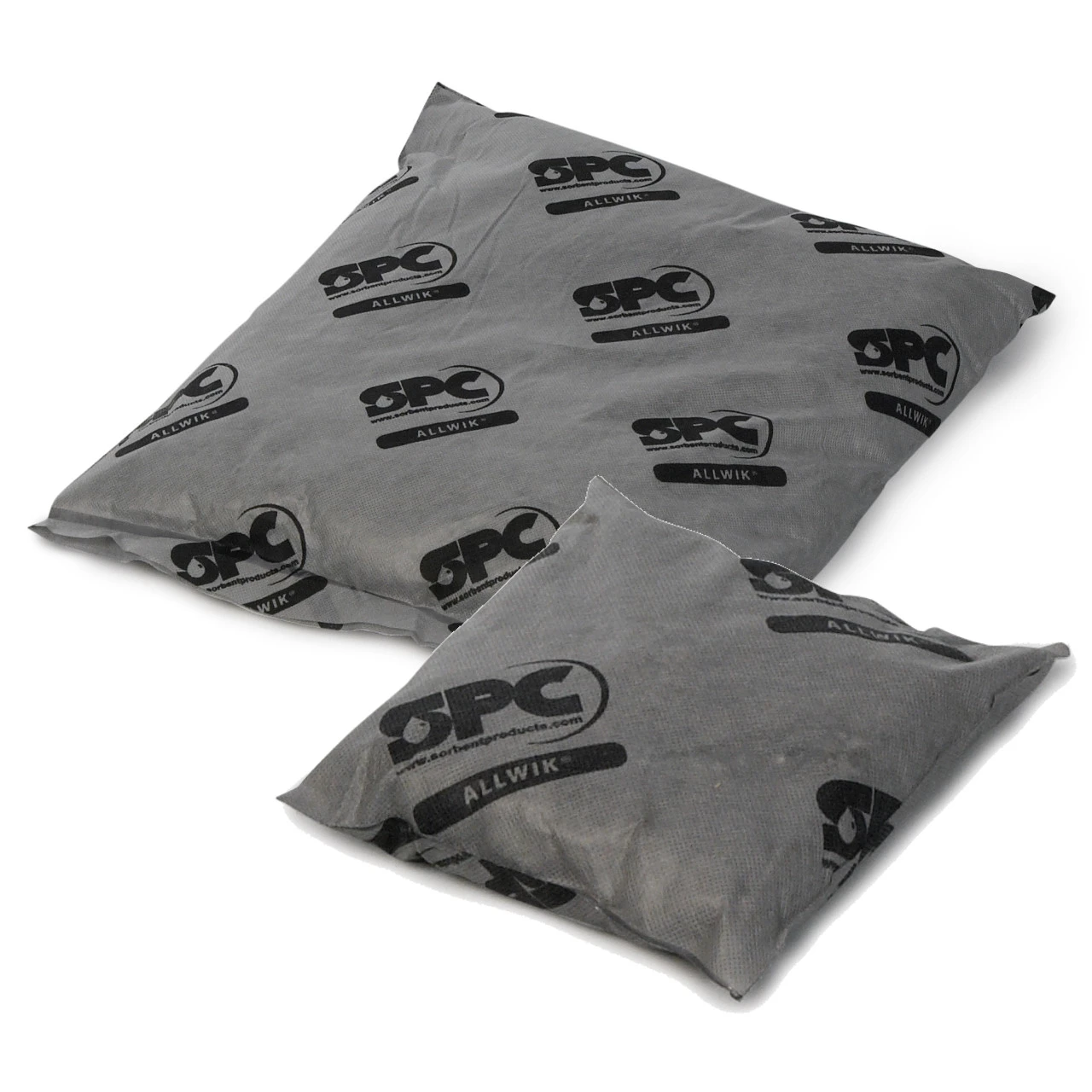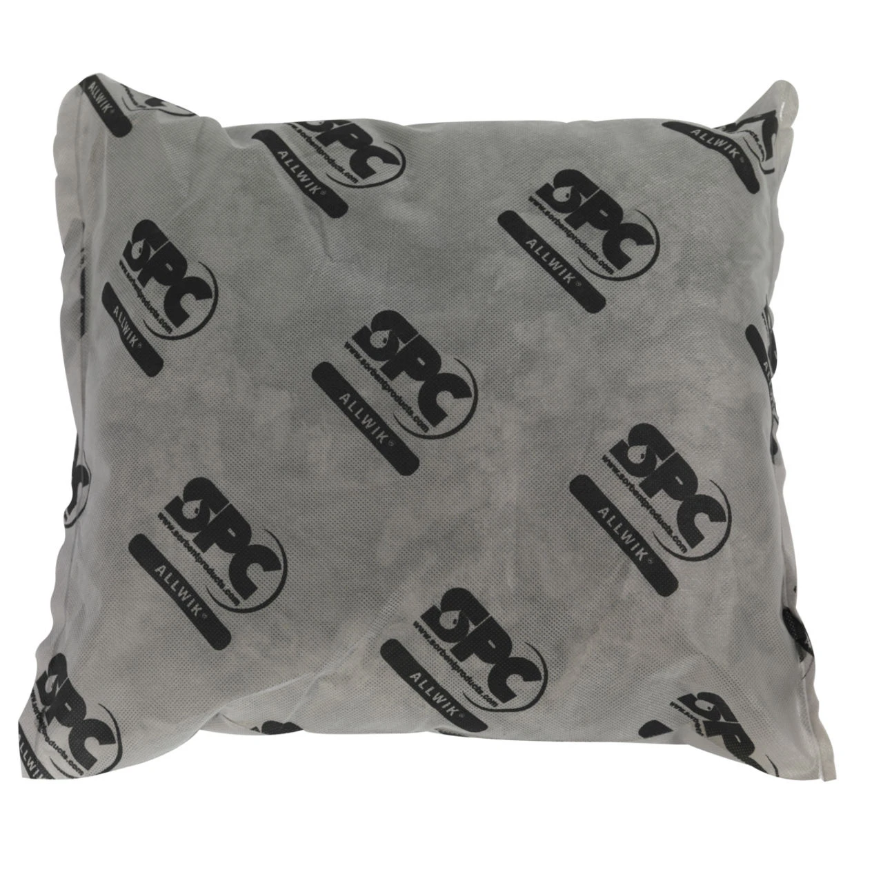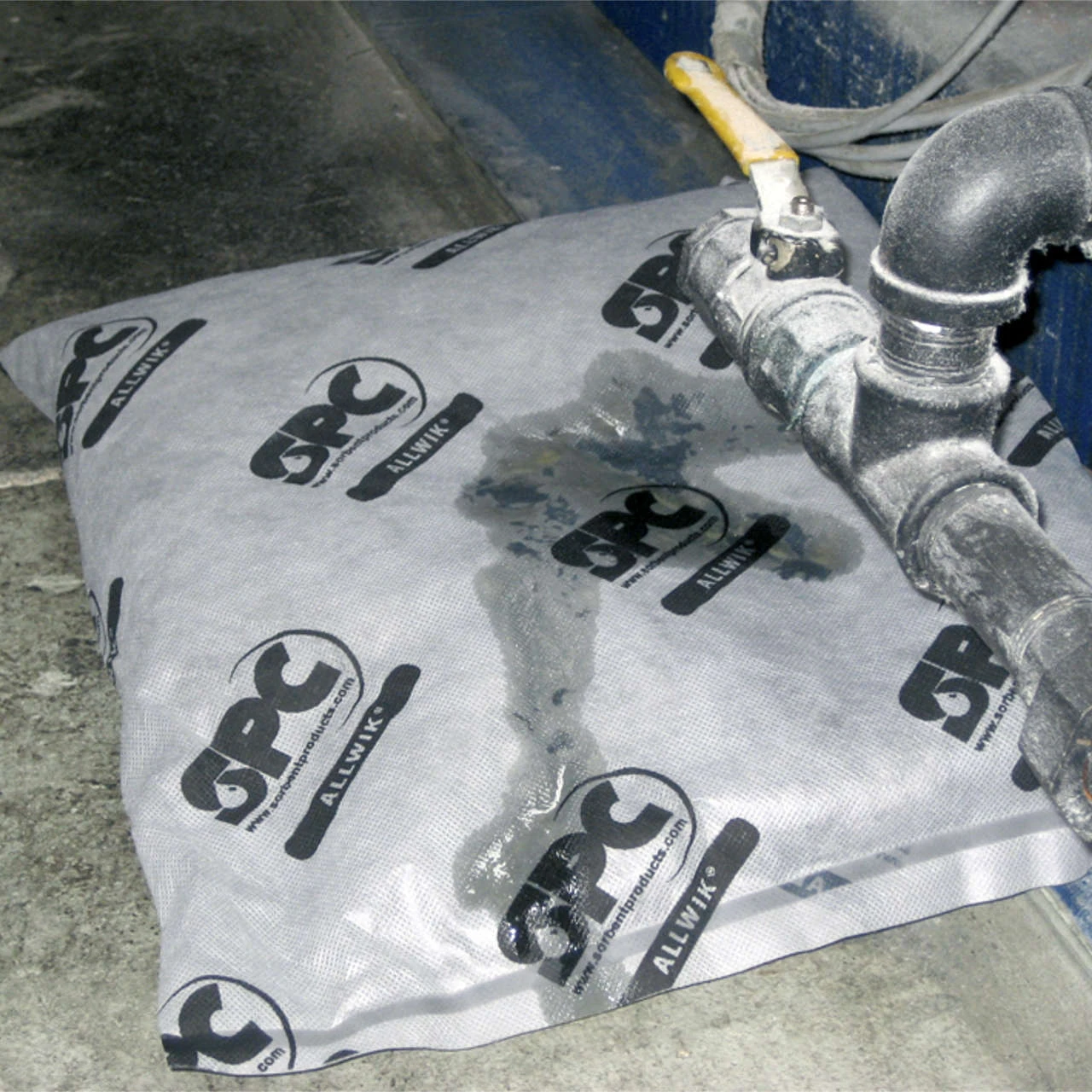 Universell einsetzbares Allwik Kissen zur Bindung von Lösungsmitteln, Wasser, Ölen, von Kühlflüssigkeiten oder anderen industriellen Substanzen. Die mit grauem Polypropylen gefüllten Kissen können in Ecken, unter Maschinenteile oder unter Tropfstellen gelegt werden und passen sich flexibel an. Perfekt zum Aufnehmen verschütteter und ausgelaufener Flüssigkeiten. Die Allwik Kissen stehen für unterschiedliche Raumanforderungen in zwei Größen zur Verfügung.