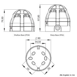 | Schutzklasse: | IP54 (Shallow Base) IP65 (Deep Base) |