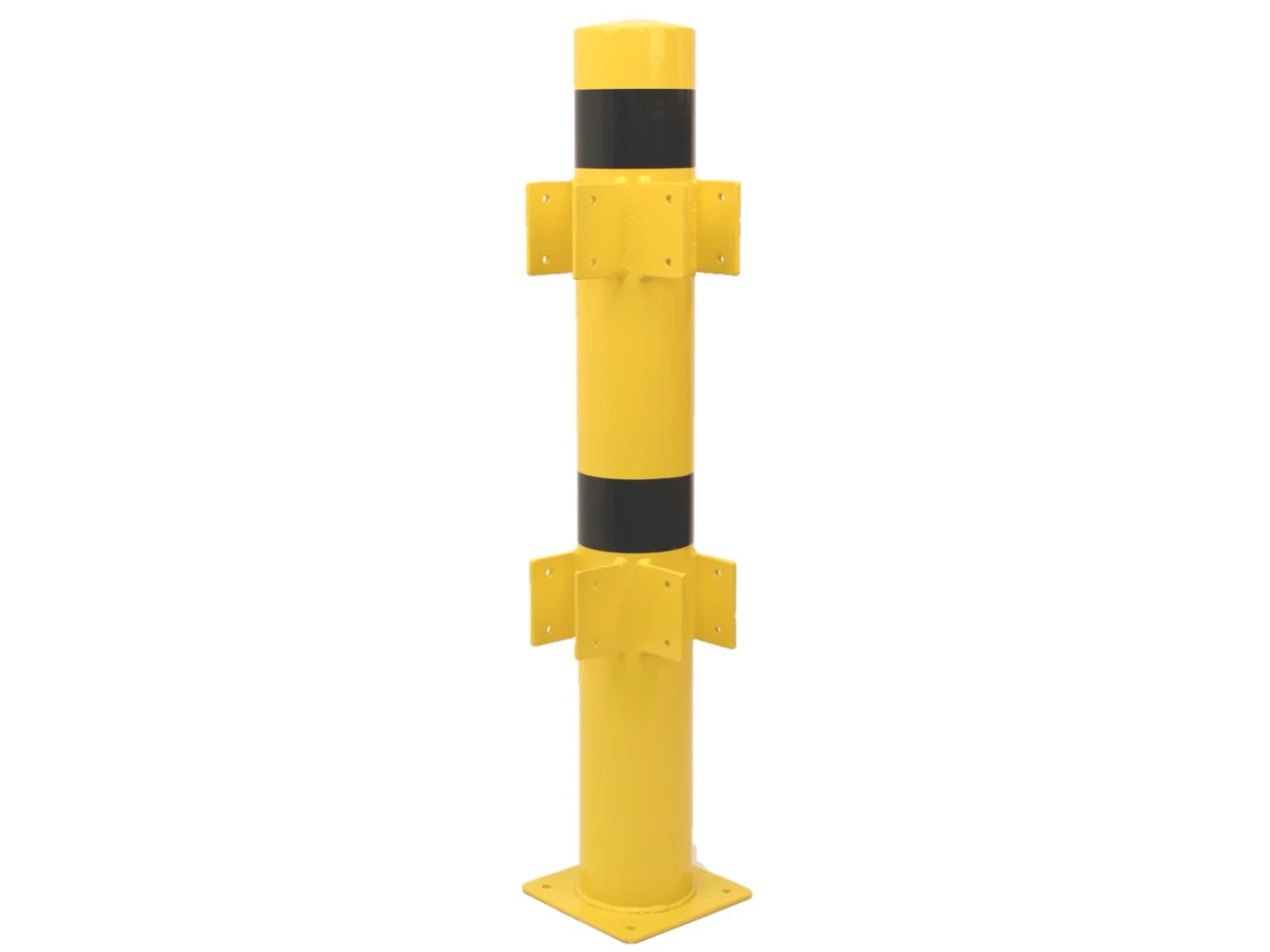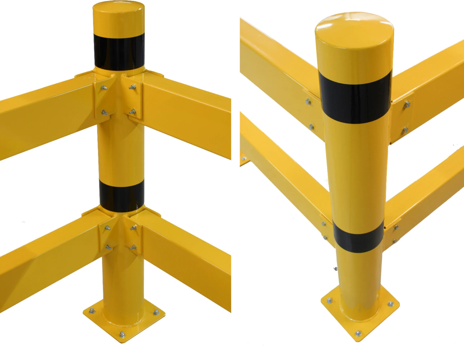 Der 120 cm hohe XL-Eckpfosten mit einem Durchmesser von Ø 159 mm und einer Wandstärke von 4,5 mm kann einfach mit dem modularen Sicherheitsgeländer kombiniert werden. Die Höhen der Befestigungspunkte für die Balken denen der Standard-Pfosten. Durch die schwarze Warnmarkierung ist der Eckpfosten schnell und deutlich zu erkennen. Der Pfosten ist in pulverbeschichteter Ausführung für den Inneneinsatz oder auch in verzinkter / pulverbeschichteten Version für den Außeneinsatz erhältlich.