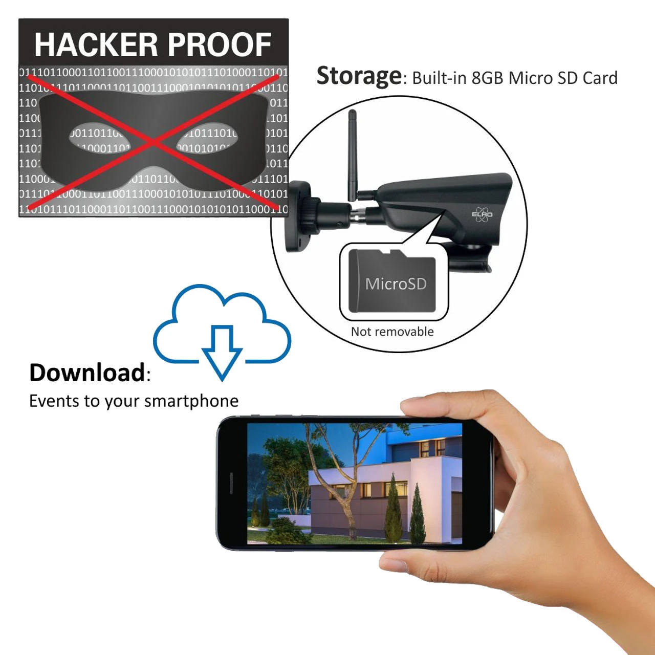 Die Installation ist dabei denkbar einfach. Durch Plug and Play stecken Sie die Kamera in einen beliebigen Bildschirm, dieser zeigt sofort die in Echtzeit aufgenommenen Bilder an. Die Kamera übernimmt jedoch auch die Übertragung per Antenne an die Elro Smartphone App. Binnen Sekunden können Sie die Bilder online abrufen. Ein Highlight unter den Überwachungskameras. Die Kamera ist zudem IP65 zertifiziert, damit wasserdicht und für den Außeneinsatz geeignet.