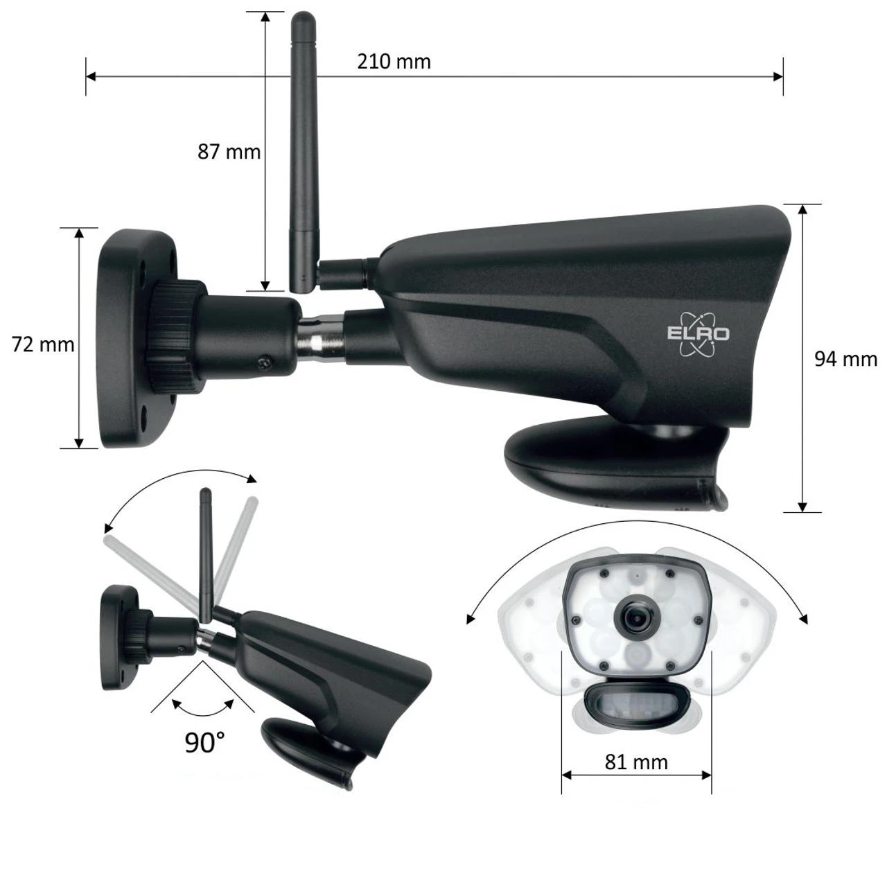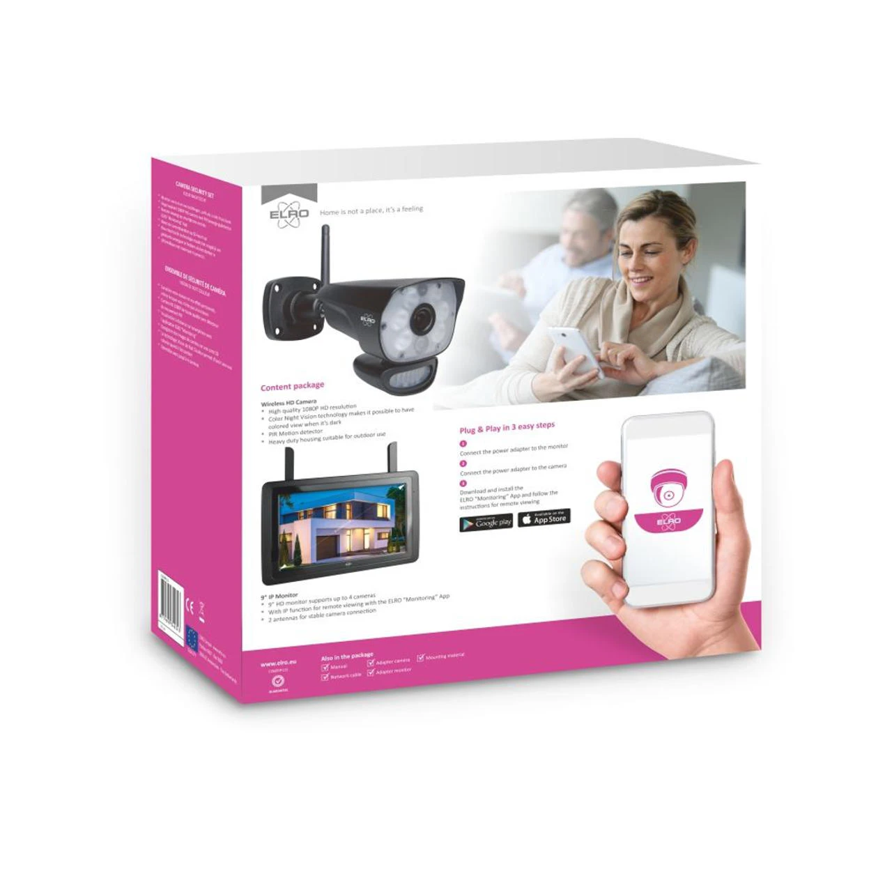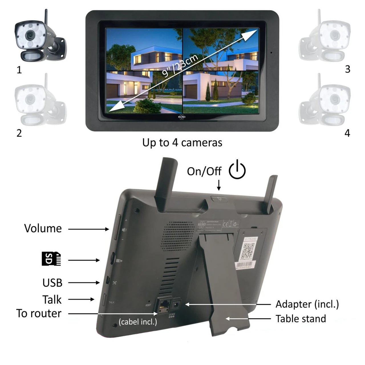 - Bildübertragung über den 7″ Bildschirm oder über die ELRO Monitoring App
