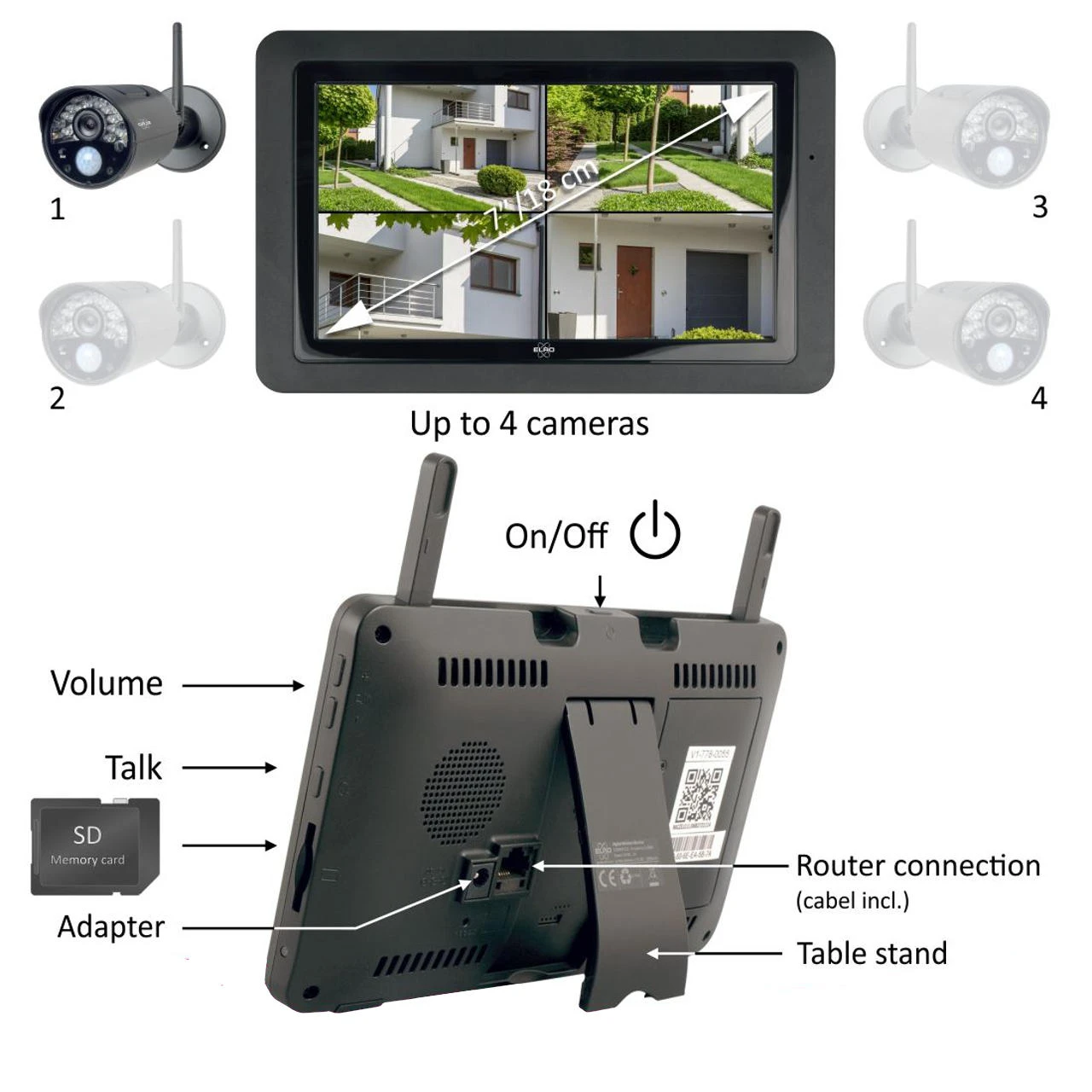 - Bildübertragung über den 7″ Bildschirm oder über die ELRO Monitoring App