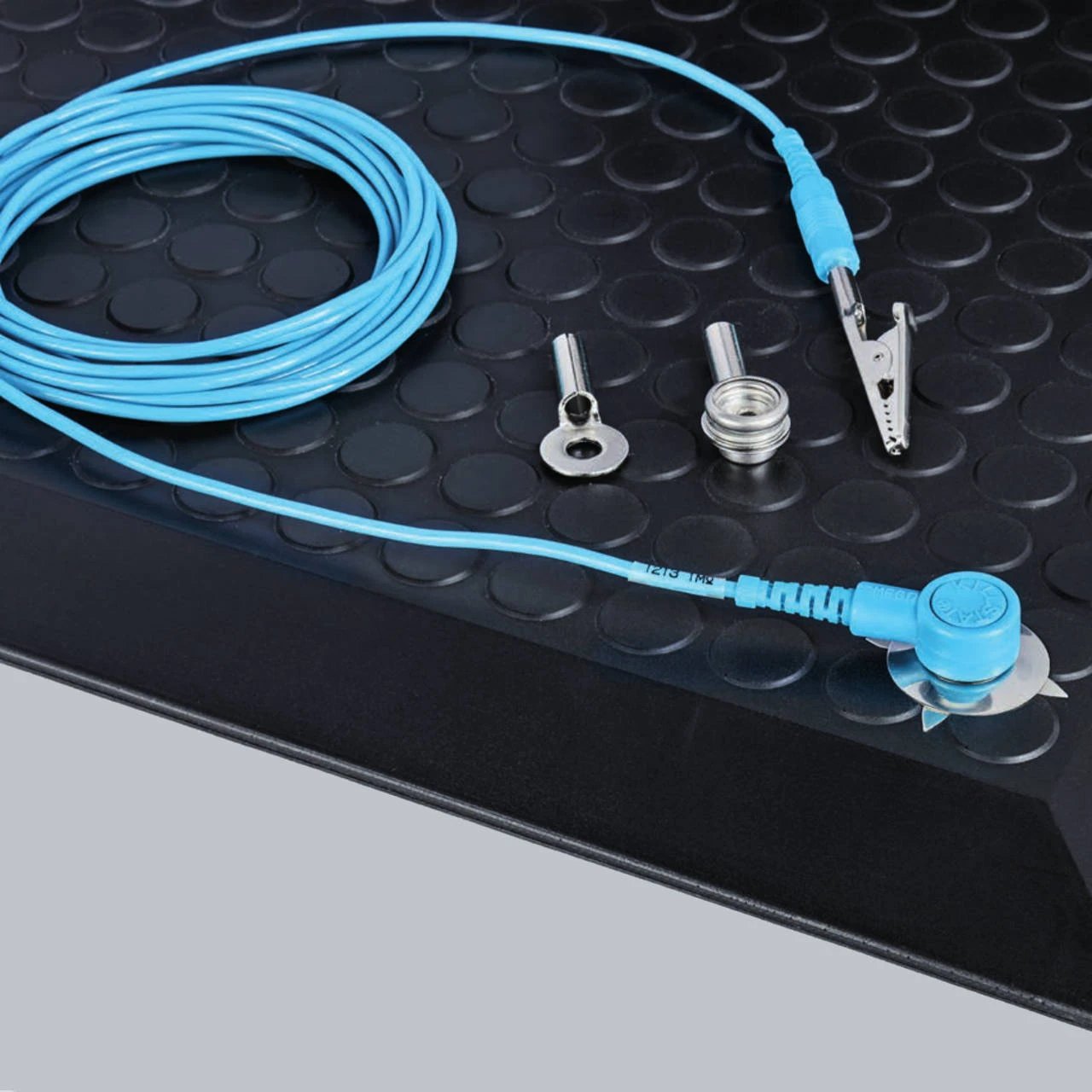 Inkl. Bananenstecker, Krokodilklemme, Ringöse und Druckknopferdungsanschluss für ESD-Arbeitsplatzmatte