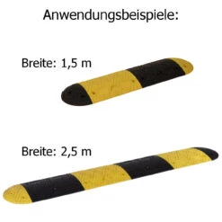 Fahrbahnschwellen, auch Temposchwellen genannt, können aufgrund der Modulbauweise je nach Anforderung individuell zusammen gestellt werden. Die durchgefärbten Schwellen aus Neugummi können problemlos von PKW und LKW mit einem Gesamtgewicht von 40 t überfahren werden.