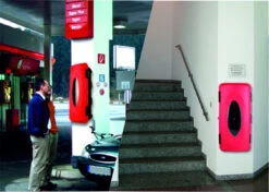 - Einsatzbereich: Gebäude-Version – Innenbereiche und Außenbereiche (für Feuerlöscher bis max. 195mm)