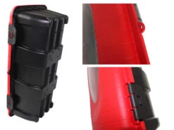 Im roten Schutzdeckel ist ein Sichtfenster integriert, welches mit beiliegendem Aufkleber ‚Feuerlöscher“ versehen werden kann – sichtbar für jeden! Schnellen Zugriff im Brandfall ermöglichen zwei Clip-Verschlüsse. Zum Schutz vor Diebstahl und Manipulation kann die S-Box Red jederzeit plombiert werden.Die S-Box selbst ist aus stoßgeprüftem Material gefertigt, temperaturbeständig von -40°C bis +80°C sowie UV – beständig. Durch die spezielle Form und der qualitativ hochwertigen Verarbeitung ist Ihr Feuerlöscher im Innen-sowie Außenbereich durch unsere S-Box bestens geschützt.