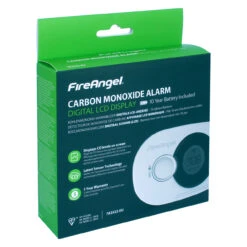 Der neue FireAngel CO-Warnmelder FA3322-EU verfügt über eine fest verbaute Lithium-Batterie und einen elektrochemischen 10-Jahres Sensor. Das LCD-Display zeigt bei Normalbetrieb die aktuelle Raumtemperatur an.