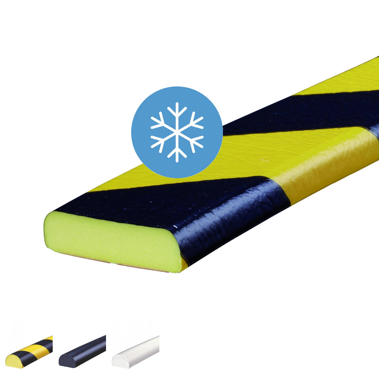 Das Schutzprofil Typ F FROST ist neben der Warnfarbe gelb-schwarz auch in schwarz oder weiß erhältlich.