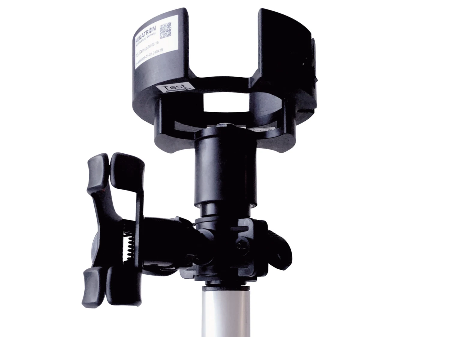 Mit dem Prüfgerät lassen sich die Genius-Melder per an die Decke montieren (Klebepadmontage), aus dem Montagesockel Ein- und Ausdrehen (Demontage), Funktionstest und Wartung durchführen.