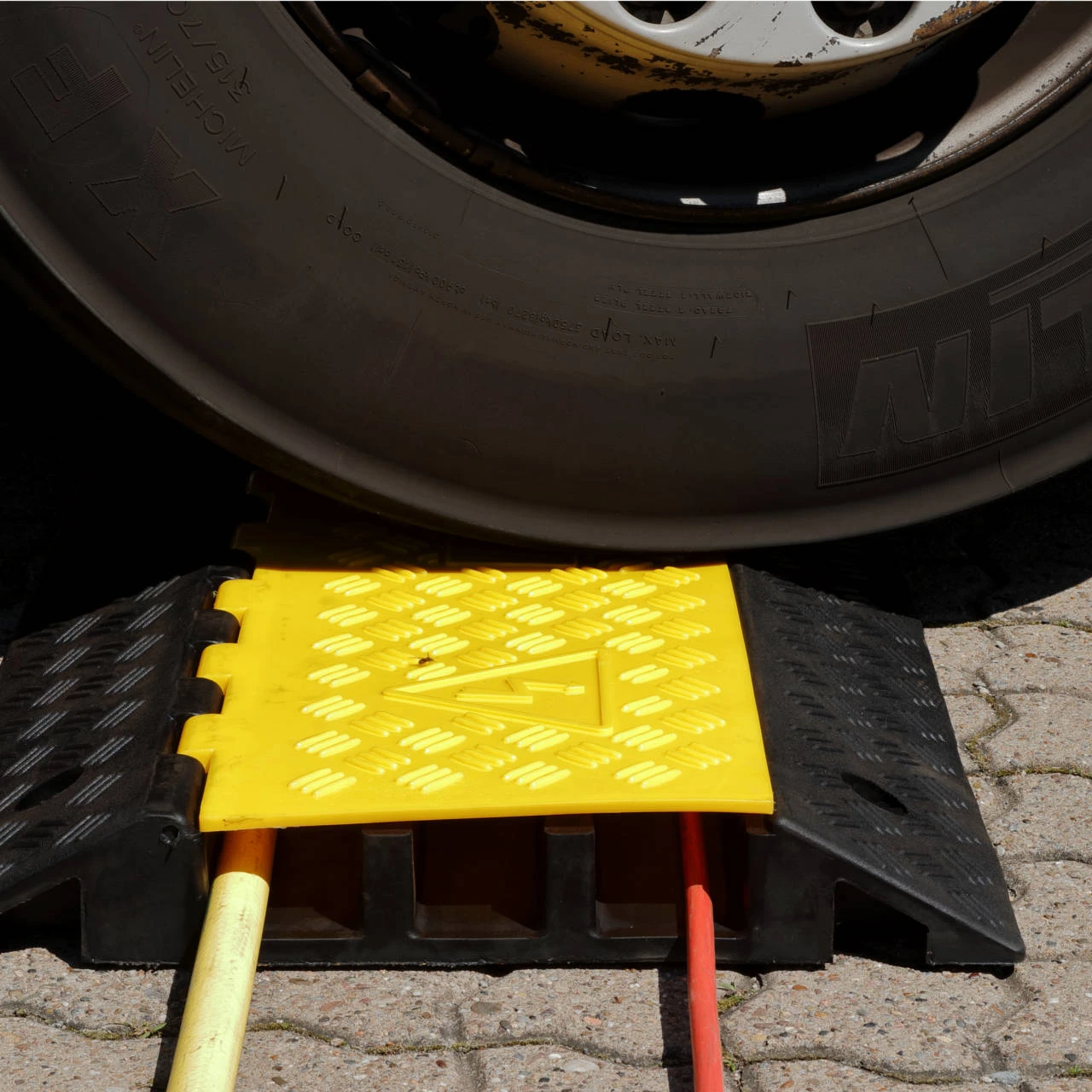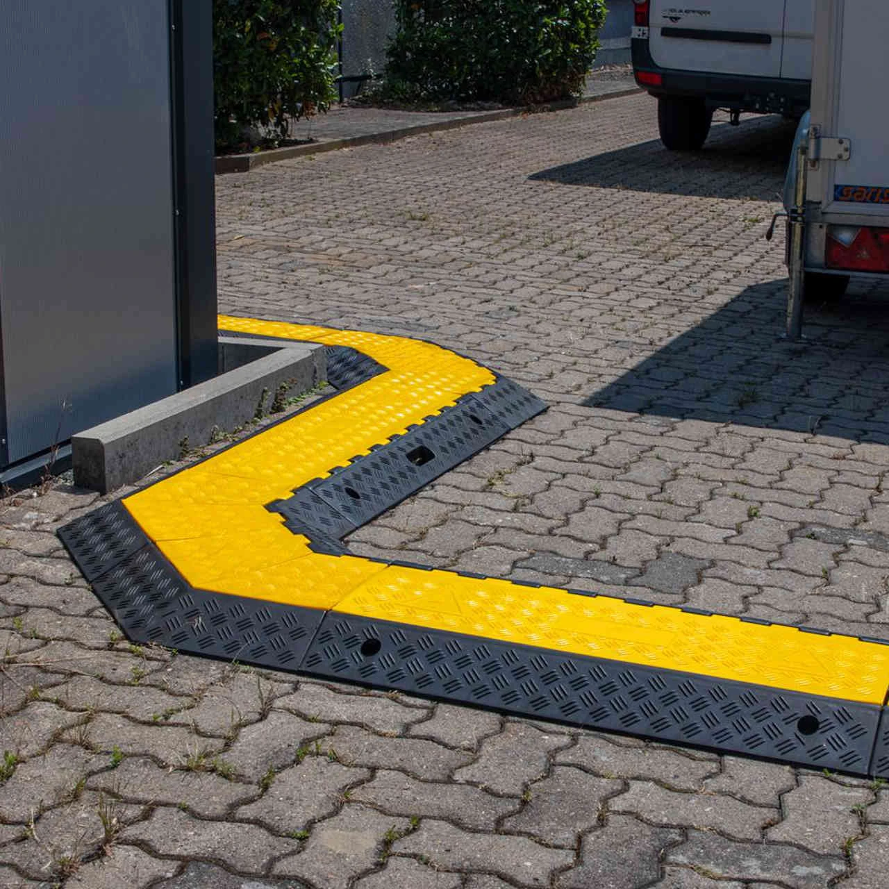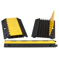 Gefertigt sind die Kabelbrücken aus recyceltem Gummi. Der klappbare Deckel ist aus hochbeständigem Kunststoff gefertigt. Durch die schwarz-gelbe Farbgebung ist die Kabelbrücke für Verkehrsteilnehmer sowie für Fußgänger schnell erkennbar.
