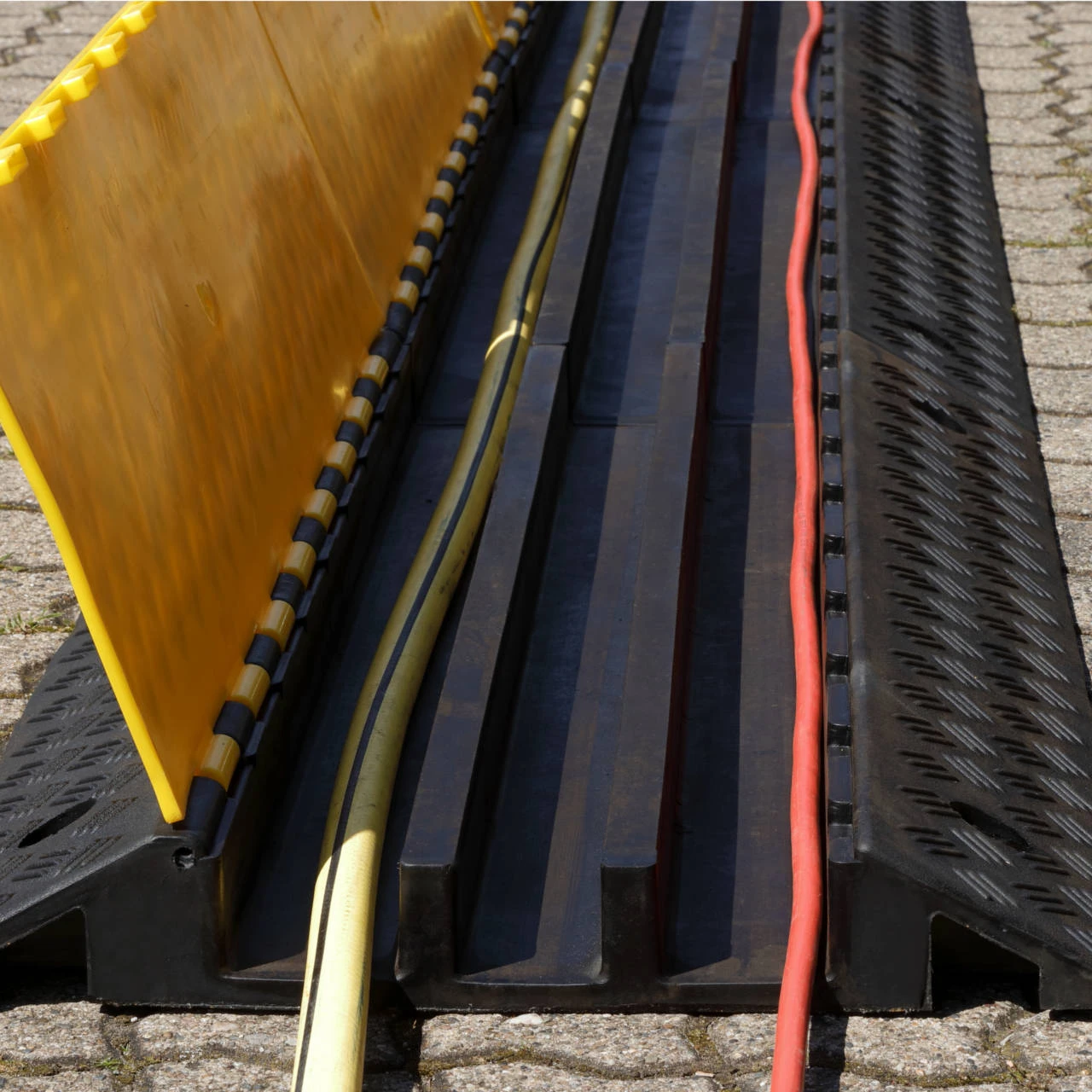 Kabelbrücken mit Deckel schützen Kabel und Schläuche ideal vor Beschädigungen, aber auch auf Gehwegen oder Veranstaltungen können eventuelle Stolperfallen mittels Kabelbrücken vermieden werden.