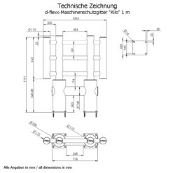 Das flexible Maschinenschutzgitter „Kilo“ von d-flexx ist eine Kombination aus der Verkehrsbarriere „Charlie“ und dem Maschinenschutzgitter „Foxtrot“. Das robuste untere Rohr bietet zusammen mit dem darüber befindlichen Maschinenschutzgitter einen idealen Schutz für teure Maschinen oder Betriebseinrichtungen.