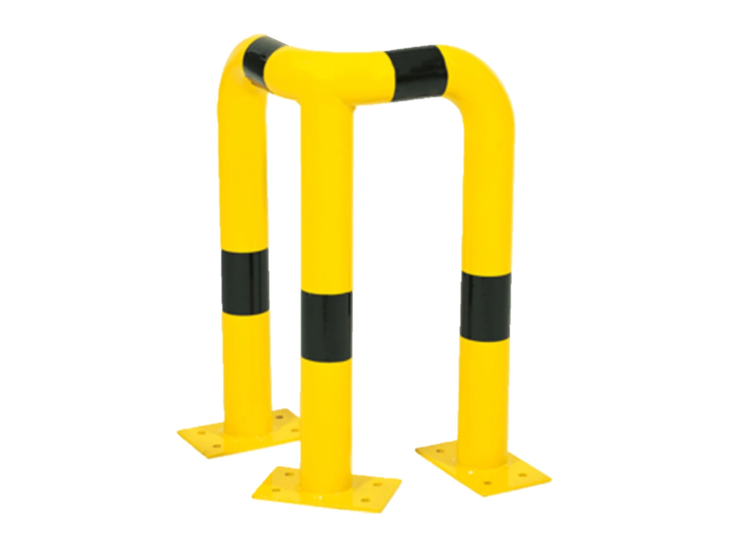 Durch die gelbe Warnfarbe mit schwarzen Markierungsstreifen sind die Rammschutzecken von weitem erkennbar und kennzeichnen somit eine Gefahrenstelle.