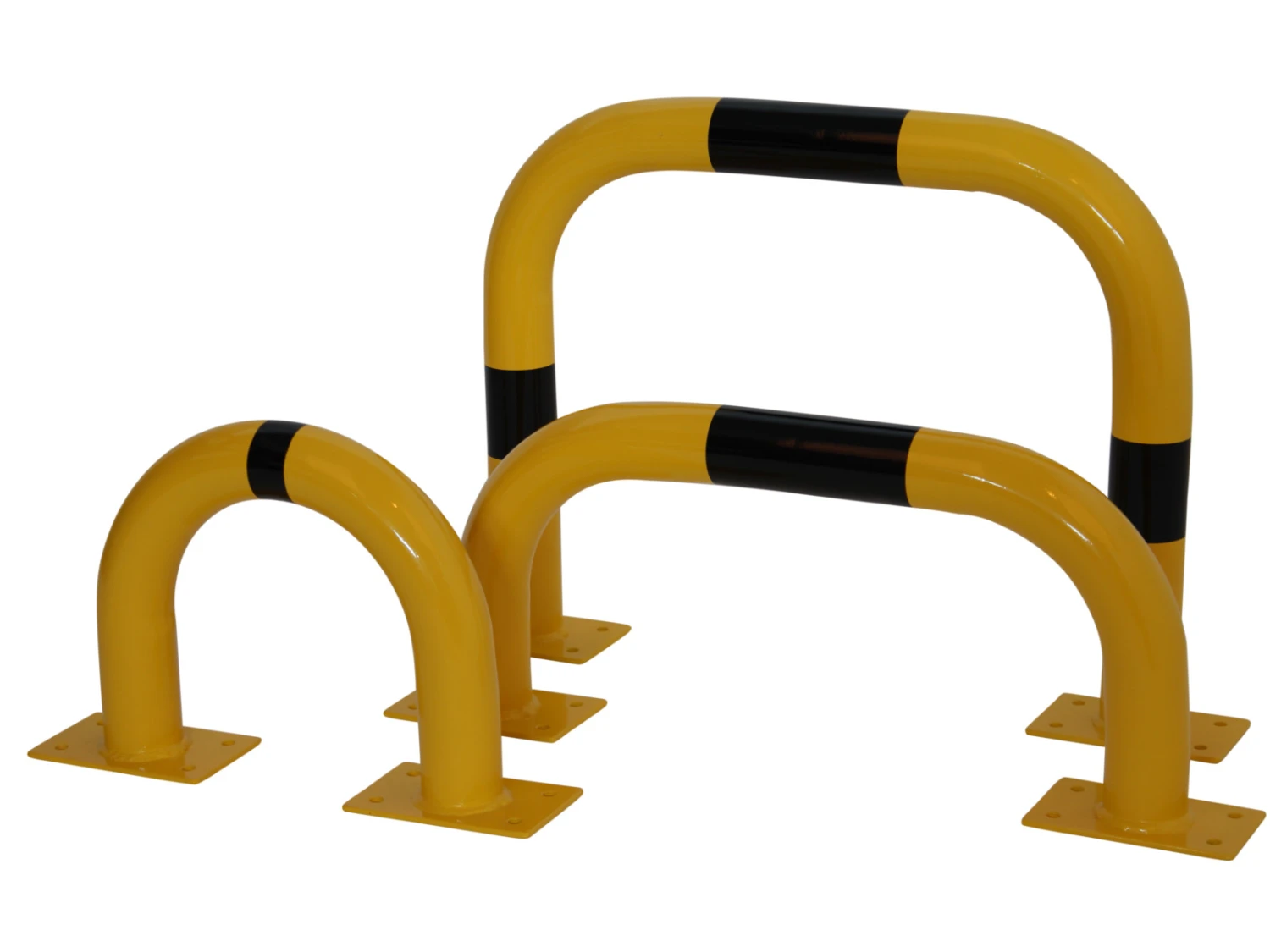 Je nach Einsatzzweck sind die Rammschutzbügel in verschiedenen Größen und Ausführungen erhältlich. Die verzinkten Bügel sind auch für den Außeneinsatz geeignet.