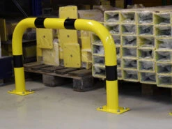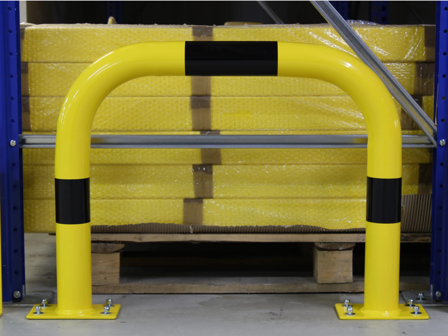 Unsere Rammschutzbügel aus hochwertigem Stahl sorgen für einen effektiven Schutz von Maschinen, Inventar und Gebäudeteilen. Die Bügel mit einer Materialstärke von 3,2 mm und einem Durchmesser von Ø 76 mm wurden mittels Biegetechnik verformt und besitzen somit keine Schweißnähte (ausgenommen die Verbindung zur Bodenplatte).