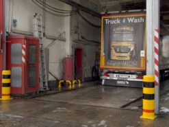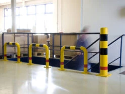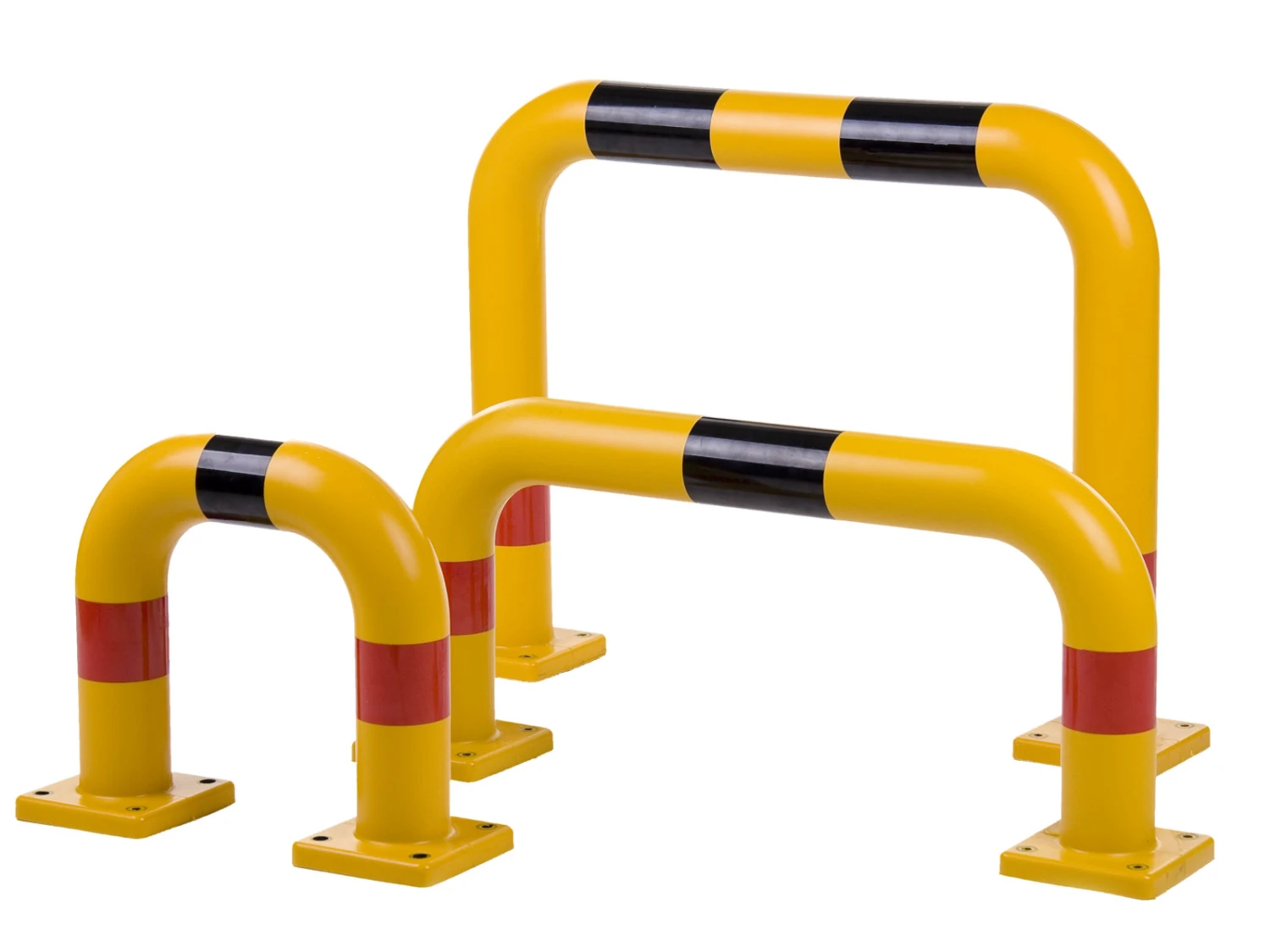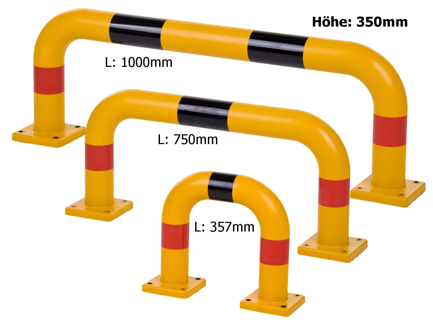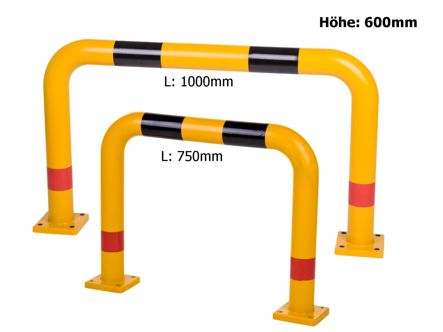 Die gelben Bügel aus schlagfestem und widerstandsfähigem Polyurethan sind durch die rote Reflektormarkierung und der schwarzen Warnmarkierung gut erkennbar.
