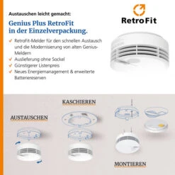 Hekatron Genius Plus N-A RetroFit Rauchwarnmelder sind technisch identisch mit dem Genius Plus Edition der neuesten Generation.