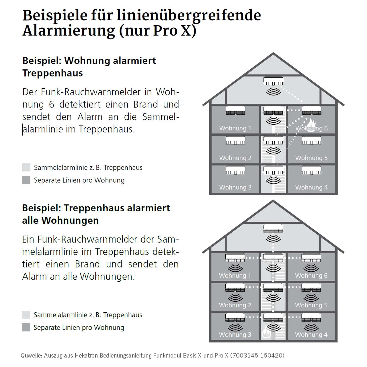 | Vernetzbare Melder: | bis zu 20 (Basis X) / beim Pro X sind mehrere Linien möglich |