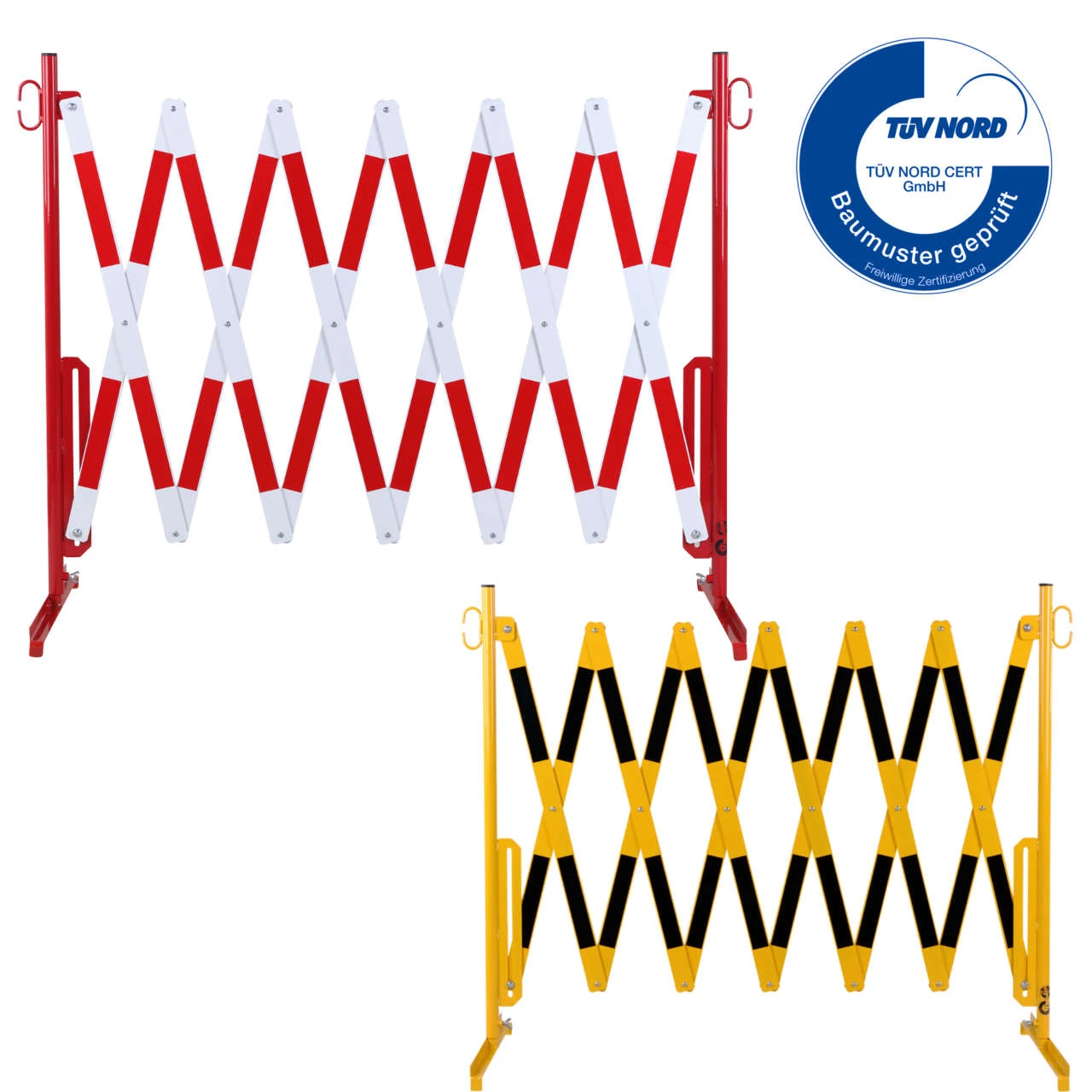 Diese TÜV-zertifizierten Scherengitter sind eine wirksame, robuste und vor allem schnelle Absicherung von Gefahrenstellen oder Hindernissen für den Inneneinsatz. Die 1050 mm hohen Scherensperren sind durch die deutlich erkennbare Farbgebung sowie der abgesperrte Bereich sofort und klar erkennbar.