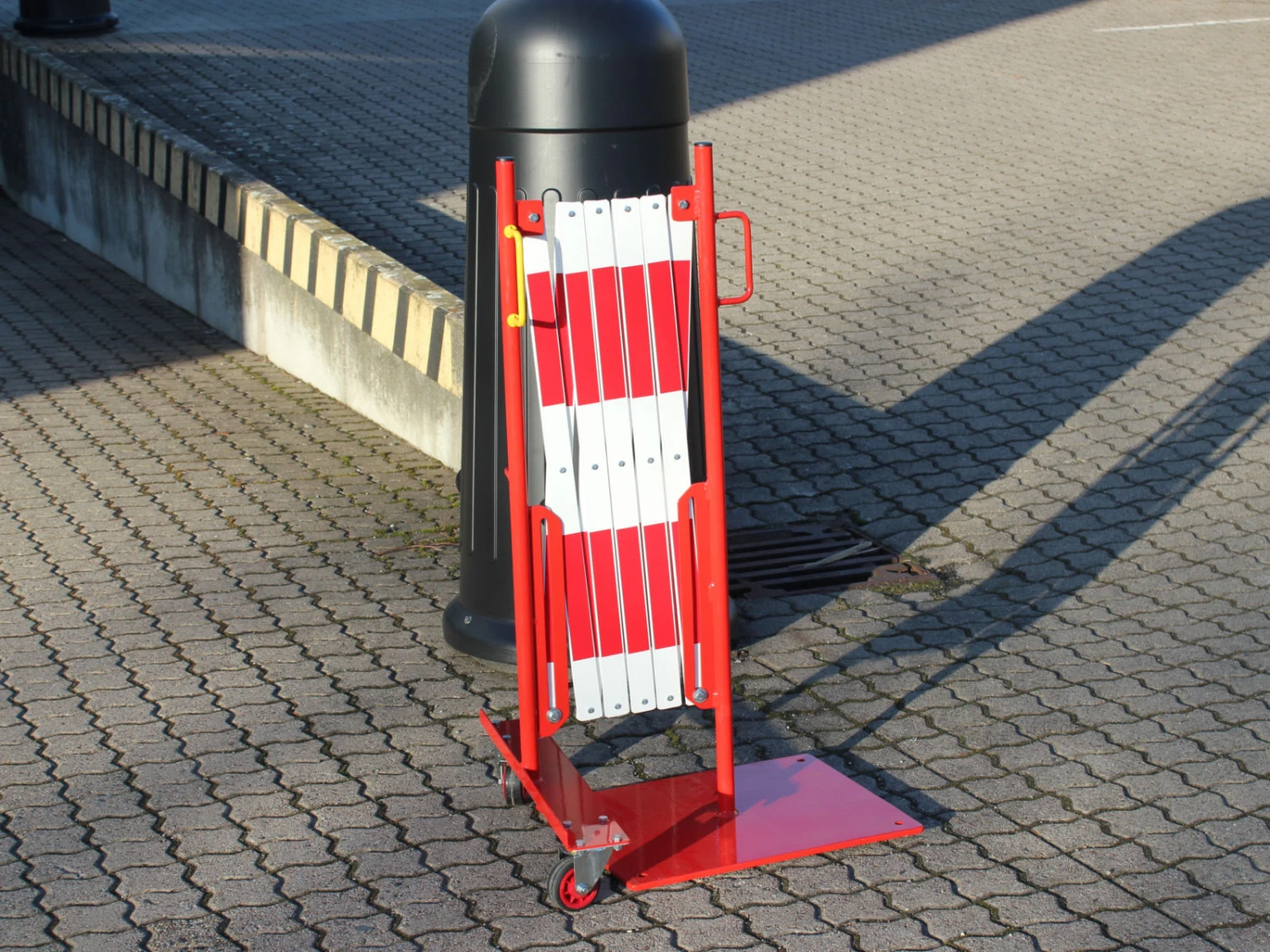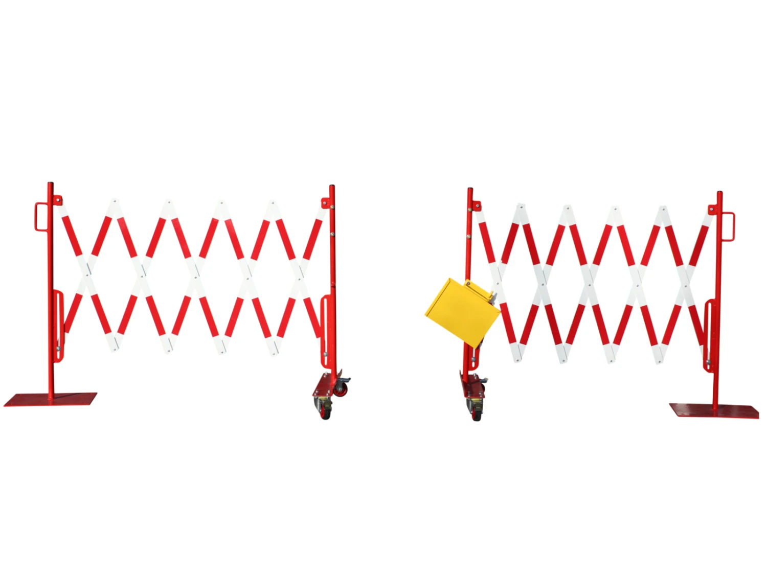 - Scherengitter aus Stahl mit Rollen und mobilem Sperrpfosten