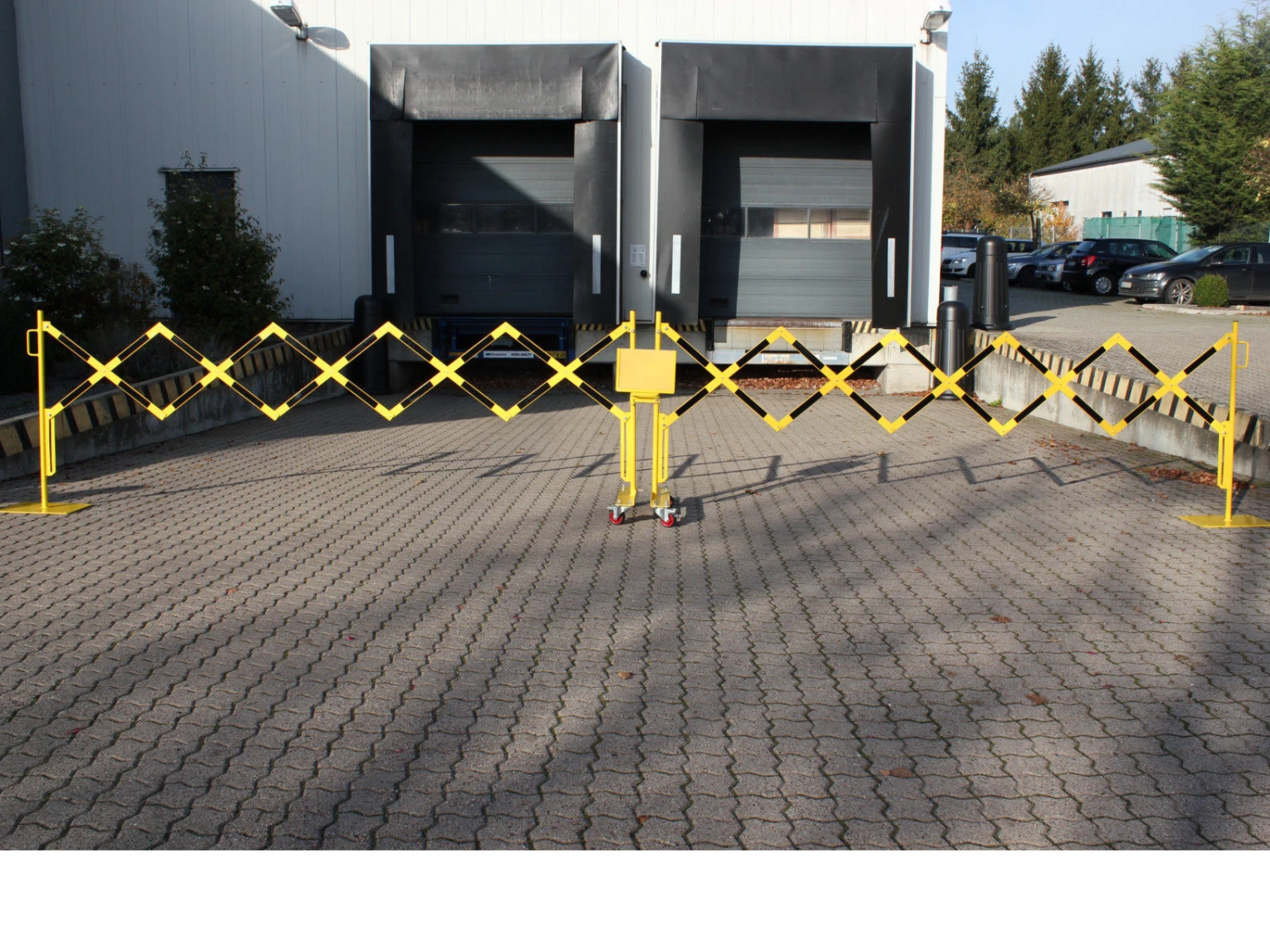 Das Scherengitterset für eine Absperrbreite von bis zu 4m ist aus verzinktem, pulverbeschichtetem Stahl gefertigt und somit auch für den Außeneinsatz geeignet. Es können bequem breite Einfahrten, Zufahrten oder Flächen gesichert oder abgesperrt werden.