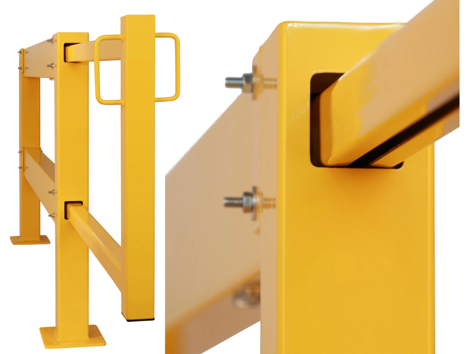 Die Elemente werden vormontiert geliefert und lassen sich aufgrund der modularen Bauweise auch in das modulare Sicherheitsgeländer aus Stahl integrieren. Der Endpfosten des Schiebetürelements kann einfach entfernt werden und durch einen Eck- oder Mittelpfosten ersetzt werden. Der Endpfosten kann für das Sicherheitsgeländer genutzt werden.