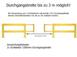 Mit den Schiebetürelementen, passend zu dem TÜV-zertifizieren Sicherheitsgeländer aus Stahl, lassen sich Durchgänge und Durchfahrtsbreiten von bis zu 3,0 Metern unkompliziert und schnell sichern.