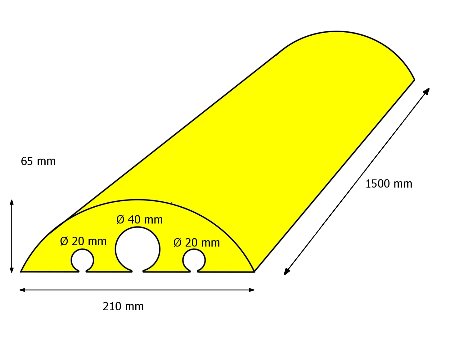 Die einfache Schlauch- und Kabelbrücke in gelber Ausführung ist 1500 mm lang und 210 mm breit. Durch das geringe Gewicht von 13,2 kg lässt sich diese durch eine Person leicht auf- und abbauen.
