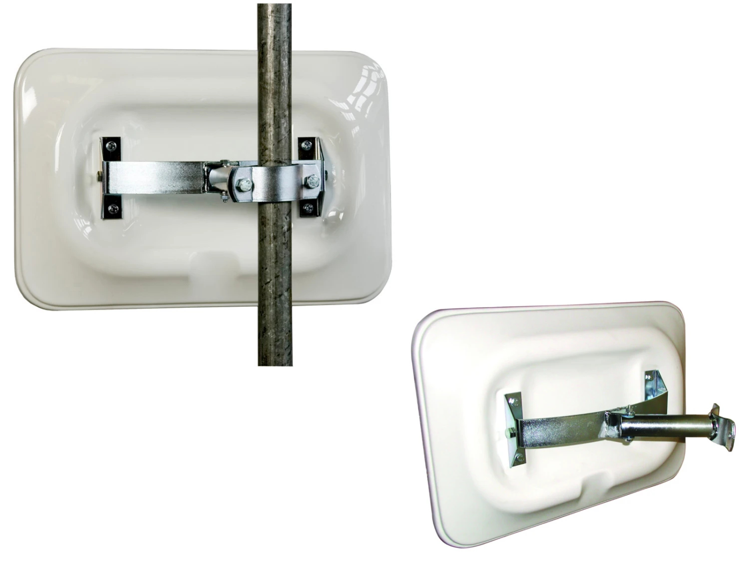 Die Montage erfolgt mittels mitgeliefertem Stahlhalter. Möglich ist eine Wandmontage oder Rohrpfostenmontage. Eckige Spiegel können zudem waagerecht oder senkrecht montiert werden.
