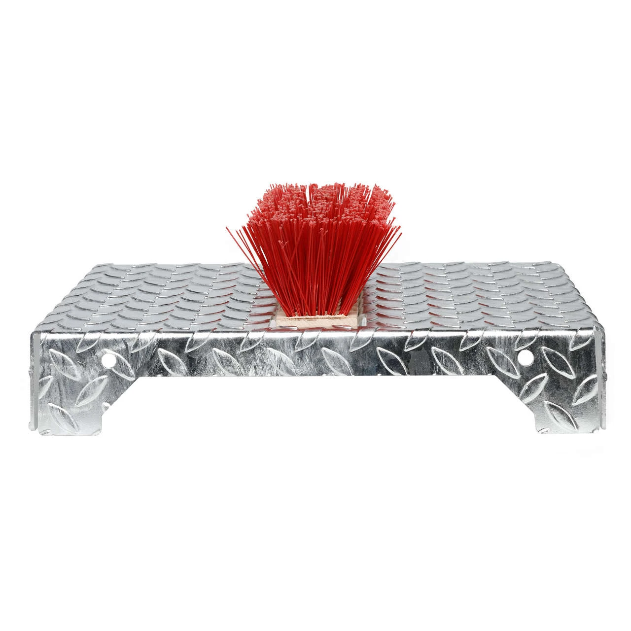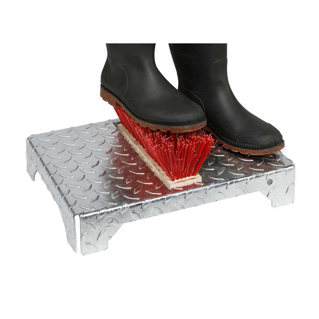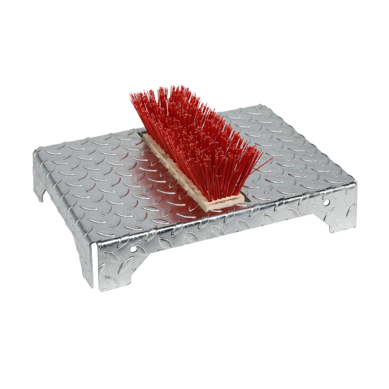 Der VAR Schuhreiniger S1 ist aus verzinktem Stahl-Tränenblech 3/5 mm gefertigt. Die Bürste ist austauschbar.